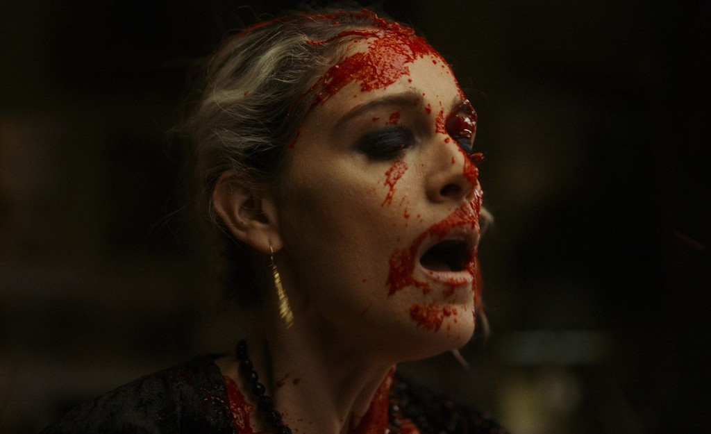 The mis-en-scène of this experimental feature is outstanding: wide shots are carefully blocked, allowing each character to inhabit their space and move within it; the protagonists themselves all have very distinct looks. Culinary institute director Jan Steven (portrayed by Gwendoline Christie), for instance, wears dark eyeshadow up to her brows. Her outfits are impeccably elegant, down to silk sleepwear, which is accentuated by a bizarre jester’s cap. Butterfield’s hair is teased to the front, obscuring his trademark blue eyes.