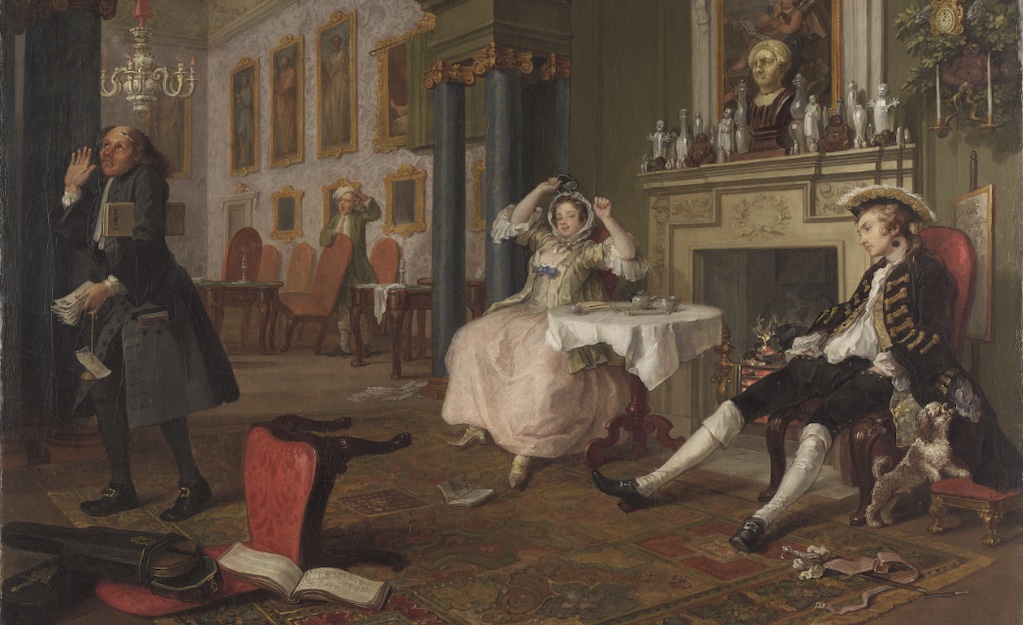 Hogarth and Europe’s curators, Alice Insley and Martin Myrone have an objective here beyond demonstrating how this celebrated Londoner drew inspiration from Europe at a time of major societal change. This, in reality, exposes the visitor to both the work of Hogarth and his contemporaries forging their careers in other thriving European cities. Some impressive pieces by the likes of Pietro Longhi in Venice, Cornelis Troost in Amsterdam and Jean-Baptiste-Siméon Chardin (whose The White Tablecloth here is particularly captivating) in Paris, are arranged around giant maps of these cities from the 18th century. The French artist Étienne Jeureat’s vivid portrayals of Parisisian street scenes, such as Arrest by the Watch (1743), reveal the extent to which he was influenced by Hogarth’s prints. The artistic cross-pollination of ideas is brought to the fore. A Plan of the Cities of London and Westminster, and Borough of Southwark; with the Contiguous Buildings (1746), by Jean Rocque and John Pine, reveals a rapidly expanding British capital that would by 1760 have become the most densely populated city in Europe. Wealthy clientele would lure the likes of Canaletto to London with his The Grand Walk, Vauxhall Gardens (c.1751) appearing at the Tate, depicting Londoners promenading in all their finery.