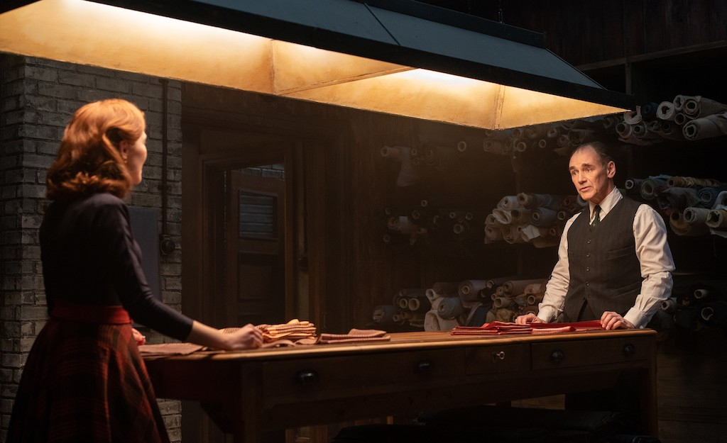 Owner of a made-to-measure tailor shop in 1950s Chicago, Leonard Burling (Rylance) frowns upon being called a tailor. He is a cutter, he corrects: he learned his craft on Savile Row. Mobster Roy Boyle (Simon Russell Beale) was his first client upon relocating to the United States, and Leonard has been a silent outfitter for the crime family ever since. One night, Boyle’s righthand man drags the boss’s bleeding son (Maze Runner’s Dylan O’Brien) into the shop, urging Leonard to stitch up his gunshot wound. With his business invaded, the craftsman is no longer able to stay out of theirs.