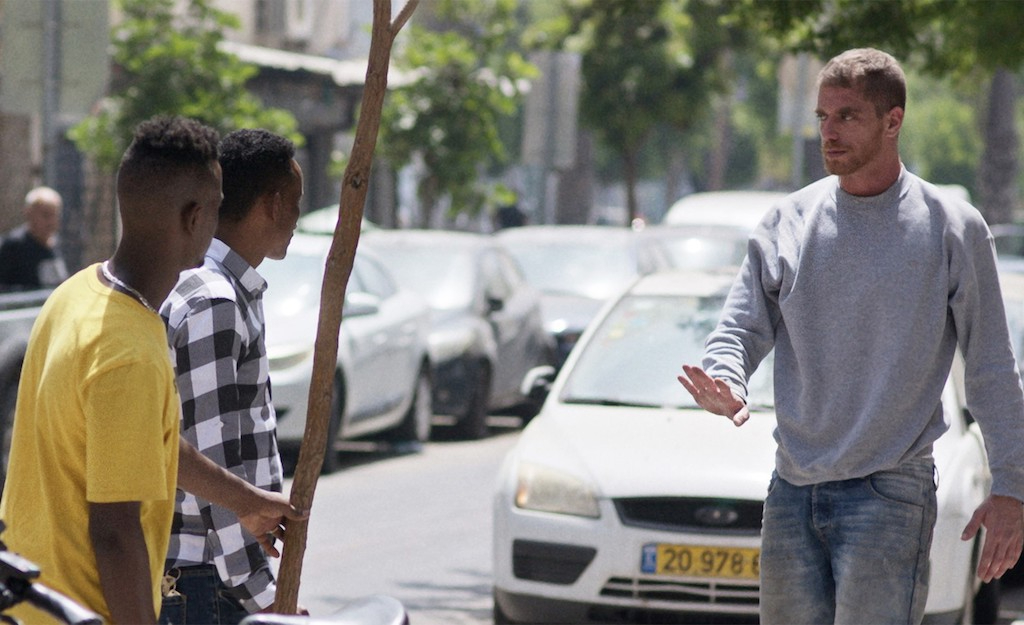 Ben (Shlomi Bertonov) and boyfriend Raz (Ariel Wolf) have relocated to such an area in Tel Aviv. They consider themselves lucky to have beaten gentrification to the punch (while also perhaps hoping to trigger it), since they’d be unable to afford such a large place in the central city. They’re in the process of choosing an egg donor, allowing them to become parents with the help of a surrogate. In an apparently harmless attempt to beautify his new neighbourhood, Ben plants a tree on the street outside their house. Noticing an Eritrean migrant damaging the tree, Ben calls the police, who respond with vicious and disproportionate force.