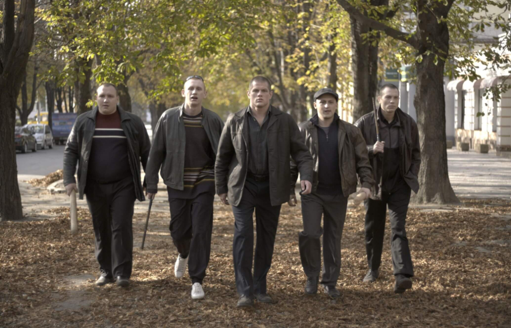 Contrasting with his adulthood of savage thuggery, the film’s opening presents Rhino as a boy in a field of sunflowers. Wielding a weapon, however, he annihilates some of the giant blooms, a preview of his destruction of the good in his life. Though a target of bullying by a gang of boys, he never stops fighting back. Another hint at the source of his developing aggression are segments showing him attacking his abusive father to protect his mother. Later he is drawn to gang brutality, crime and debauchery. It becomes apparent that the narrative is a flashback as we are introduced to future scenes of Rhino (Serhii Filimonov) in a car with an unidentified man, discussing his life and his wish for a higher purpose – though the movie offers little redemption.