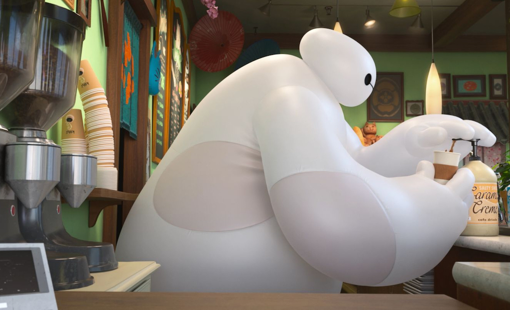 In just ten minutes, each episode showcases a diverse set of characters. This may at first seem like an effort to pander, but it’s more of a reflection of San Fransokyo – a city that embodies the multiple cultures and walks of life in San Francisco and Tokyo. There is, however, one visual criticism for the way this diversity is executed. Character designs and dialogue are good ways to present the multicultural world of Big Hero 6 and good visual cues for viewers to pick-up on – from cats drawn as super-thin to indicate their malnourished, feral existence to different being languages spoken in passing conversations – but there’s no need to ham-fist their identity on-screen. A trans man doesn’t need to be decked in the trans flag to showcase that he is, in fact, trans – his interaction with Baymax as he recommends a tampon brand to the robot is indication enough.