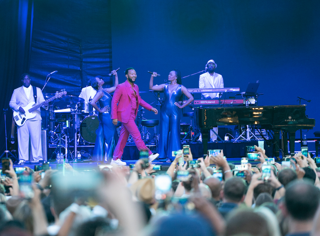 Opening with Ooh La from seventh album Bigger Love, the sweeping doo-wop of Legend’s vocals is enhanced by his tight and cohesive band; the performance oozes old-school vibes and immediately captivates the crowd. Legend sounds just as he does on his studio albums and his musical influences quickly become apparent, with echoes of Al Green, Marvin Gaye and Stevie Wonder seeping through. Fans are also treated to a poignant cover of Simon and Garfunkel’s Bridge Over Troubled Water in memory of Legend’s late grandmother.