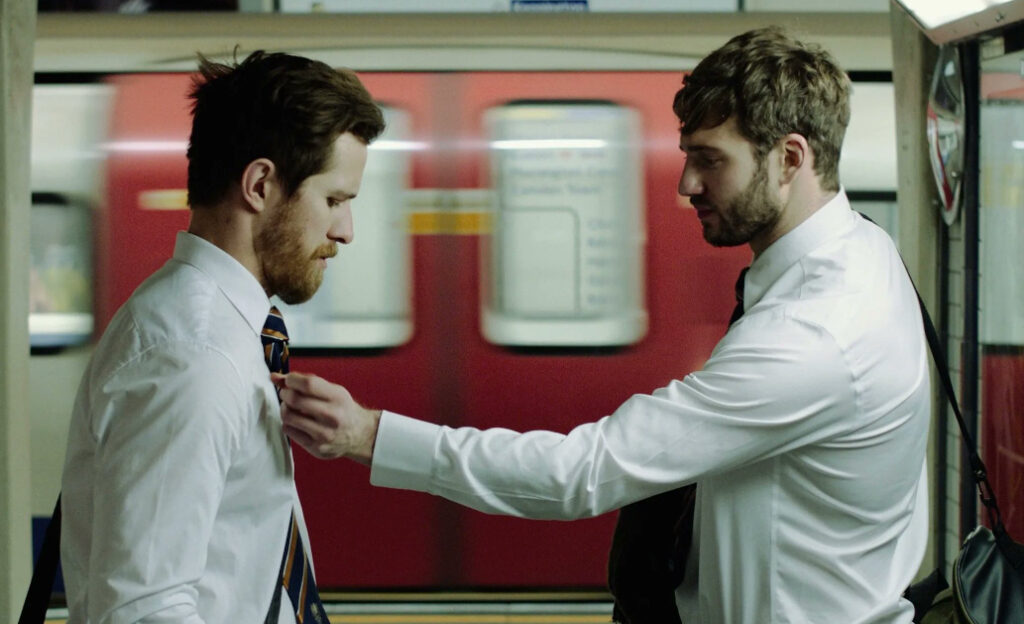 In From the Side is an incredibly unique story and the film shares a similar gay-sporting confidence with only a few titles that have come before, including the likes of the 2019 French film The Shiny Shrimps and The Pass starring Russell Tovey. The dashing Lincoln, formerly a cast member of Emmerdale, leads the way and is endearing in his vulnerability as Mark. In contrast, King’s Warren bursts into every scene oozing arrogance and a sexual dominance that first leads Mark into the fling, but also eventually proves to be the couple’s downfall.