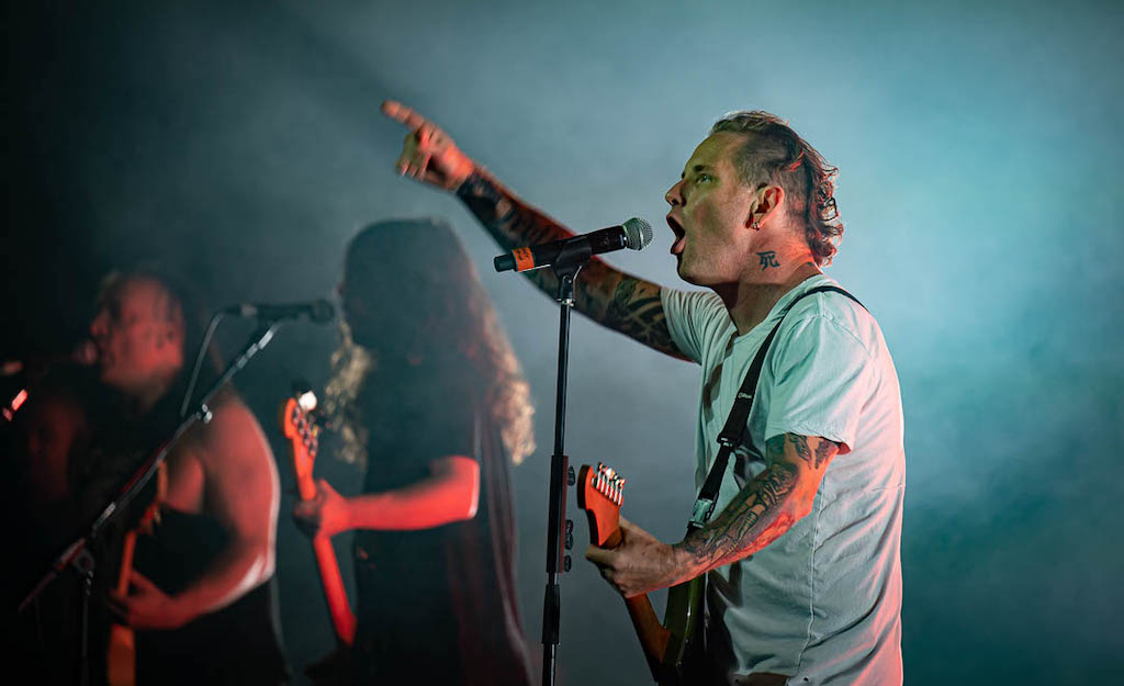 Juxtaposing Spongebob, the simple backdrop is merely four letters to the outside observer – CMFT – which is actually the name of his most recent album, standing for Corey motherf*****g Taylor. Since the album did so well in the charts, it’s no wonder its title had to be abbreviated, but tonight it doesn’t have to be. Taylor can truly perform how he wants to. Calling the fans his friends, he brings out the electric guitar for Bother and describes it as a new version of an old friend. Other old friends making an appearance are Through Glass (also from Stone Sour), a ballad that undeniably stands the test of time; Wait and Bleed is from Slipknot, but without the mask and the band it becomes a different entity.