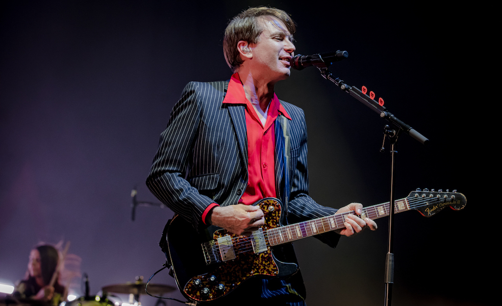Frontman Alex Kapranos is a sharp presence in pinstripe suit, red shirt, black shoes with white spats and a guitar strap emblazoned with a flash of lightning. He is a beautiful frontman, a little understated and a little weird, a bit in the school of David Byrne. His hips are Jagger-thin and his on-stage persona exudes a delicate, ironic cockiness. His banter to the crowd is warm and affectionate, his deep, Scottish brogue a purr.