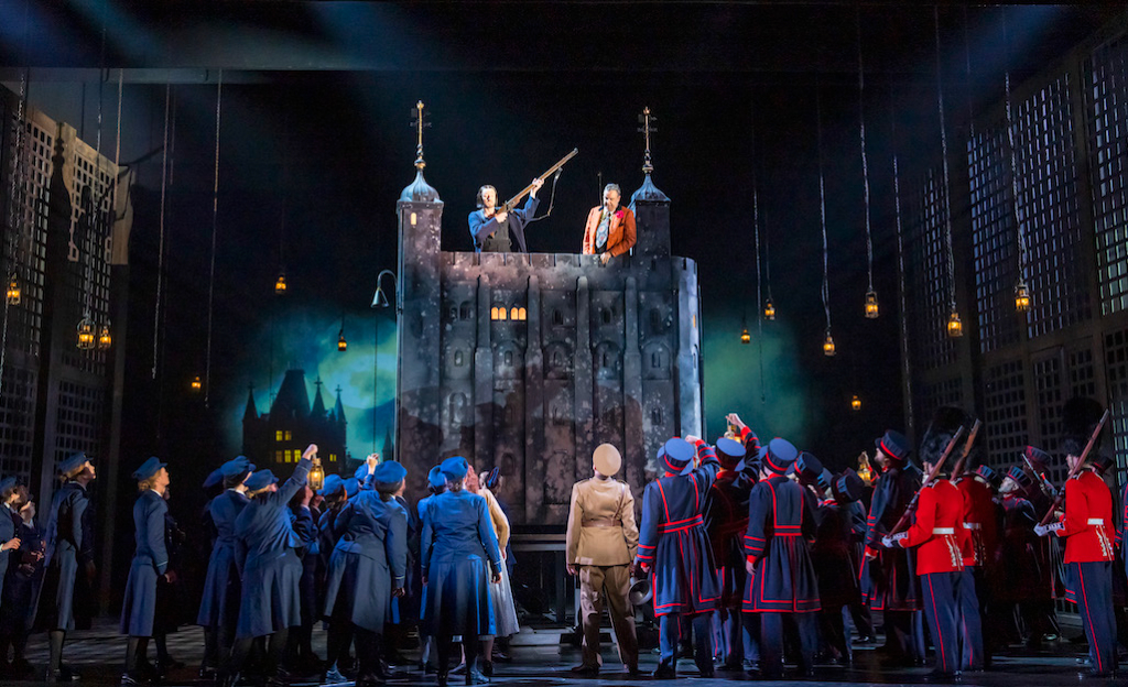 A delightfully bright, allegro adaptation of Gilbert and Sullivan’s The Yeomen of the Guard by the English National Opera takes over the London Coliseum for 14 performances this winter. Already refreshingly entertaining, the operetta set within the Tower of London assumes a contemporary look from the 50s – complete with the now nostalgic yeomen’s tabards bearing the EIIR initials – and a peppy pace.