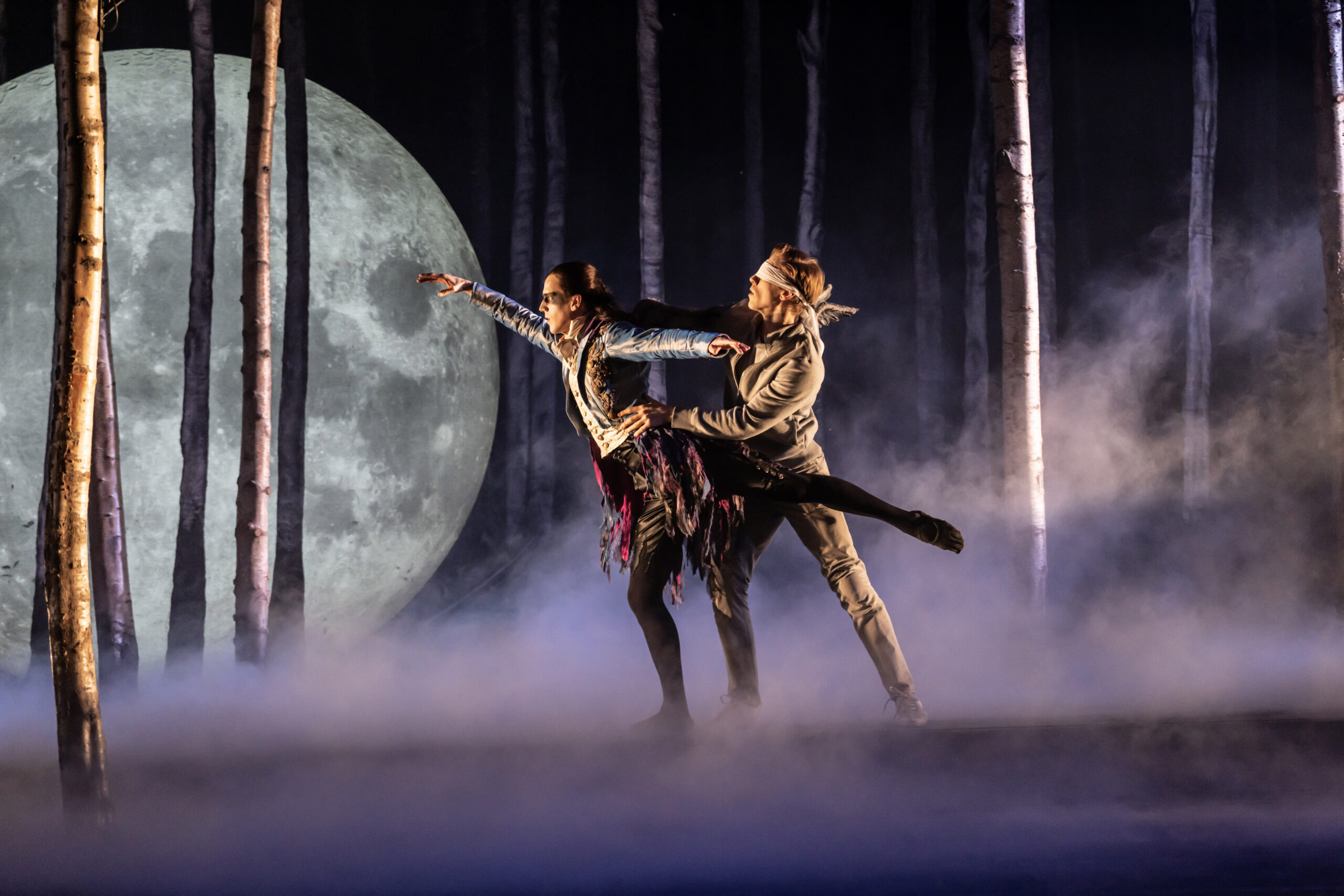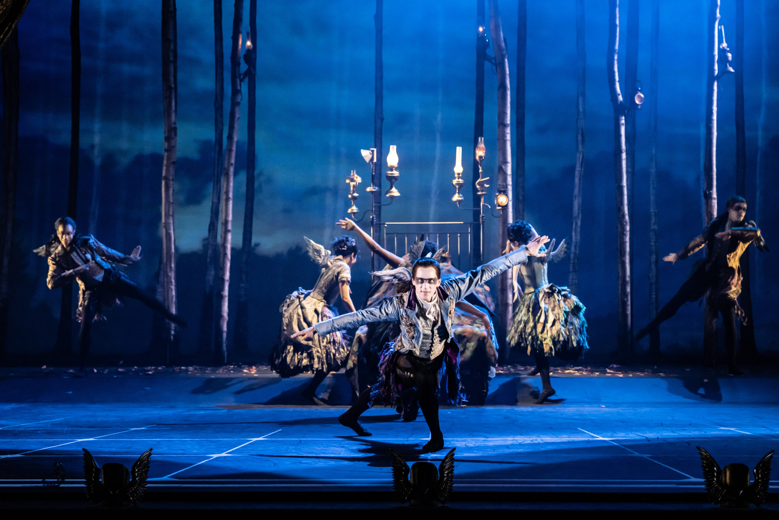 Paris Fitzpatrick, who plays both Carabosse and her son Caradoc, does a great job in both roles. His Carabosse is enjoyably BDSM and a classical fairy tale villain, yet manages to steer clear of pantomime, while his Caradoc brings us into a toxic push and pull, making us feel both attracted and repulsed. Ashley Shaw (Princess Aurora) brings a sense of freedom and personality to her character, from throwing off her shoes and showing genuine joy at being barefoot, to her dreamy, sleepwalking numbers in the enchanted forest. The fairies incorporate bird-like moves to create the feeling of something otherworldly. Dominic North, in particular, toes this line between friendly fairy and something darker, making us question what his true motives are.