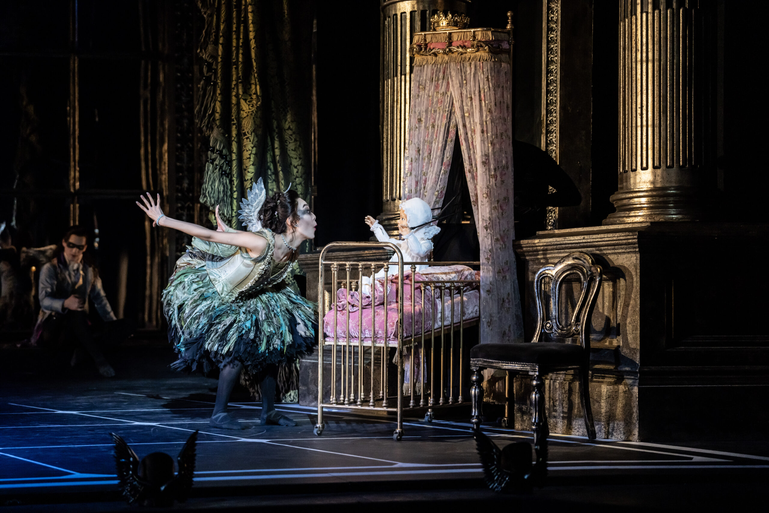 Once upon a time in 1890, there was a king and queen who were unhappy because they couldn’t have a child. In their desperation, they call upon the dark fairy Carabosse (Paris Fitzpatrick), who brings them a child they name Aurora – where this child came from, who her real parents are and what she really is, remains uncertain. The king and queen fail to show their gratitude to the dark fairy for her help in giving them a child, and so an upset Carabosse curses Aurora. In an eerie dance sequence featuring faceless performers, we are shown how Aurora will die by pricking her finger on a dark rose. Count Lilac (Dominic North), the pale and sharp-toothed king of the fairies, intervenes: instead of dying, Aurora will sleep and be woken by a kiss.