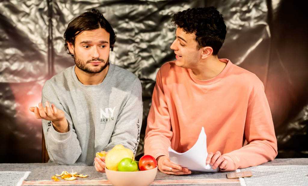 Sam (Sam Henderson) calls out to his date, Nick (Eddie Loodmer-Elliot), who appears shortly thereafter. Sam is quite the nervous wreck, while Nick comes across as calm and collected, but the two quickly begin their blossoming romance. Interspersed between moments in which they attempt to get to know one another – while Nick makes Sam’s last meal – is a relationship quiz, where participants ask 36 questions and then have to gaze at each other for four minutes. Taken from a study developed by psychologist Arthur Aron, the aim is to create mutual vulnerability.