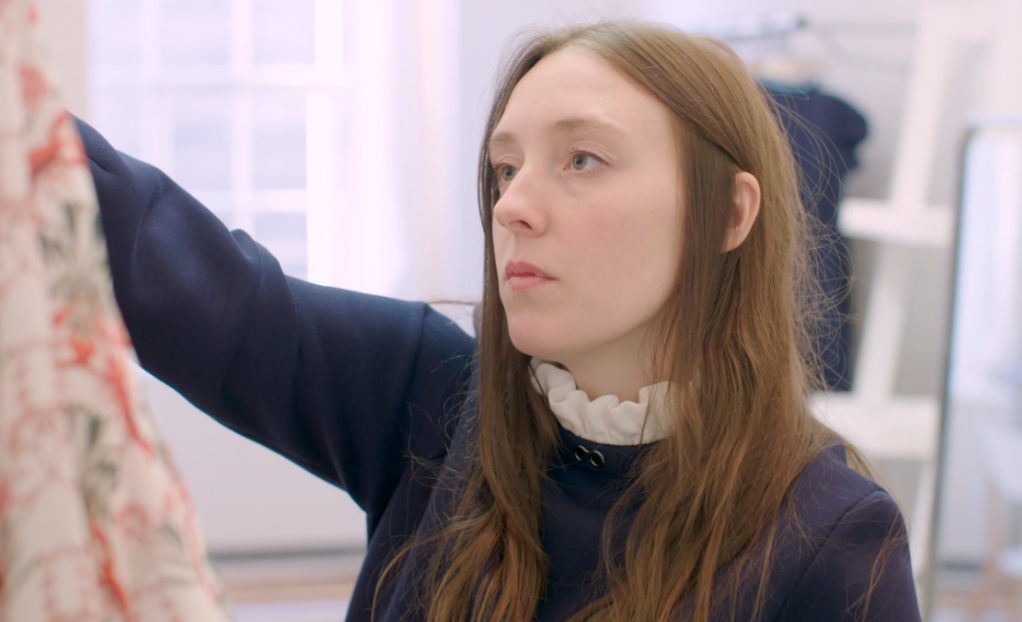 The documentary relates Powney’s life and career, starting from her childhood in the countryside to her sustainability-focused show at university, and then her success as a top designer. Her lifelong interest in ecological matters, coupled with the prize money won as the UK top emerging designer in 2017, led her to dream up and start working on the ambitious collection No Frills. Her aim was for every step of the making to be transparent and every material used to be organic and traceable.