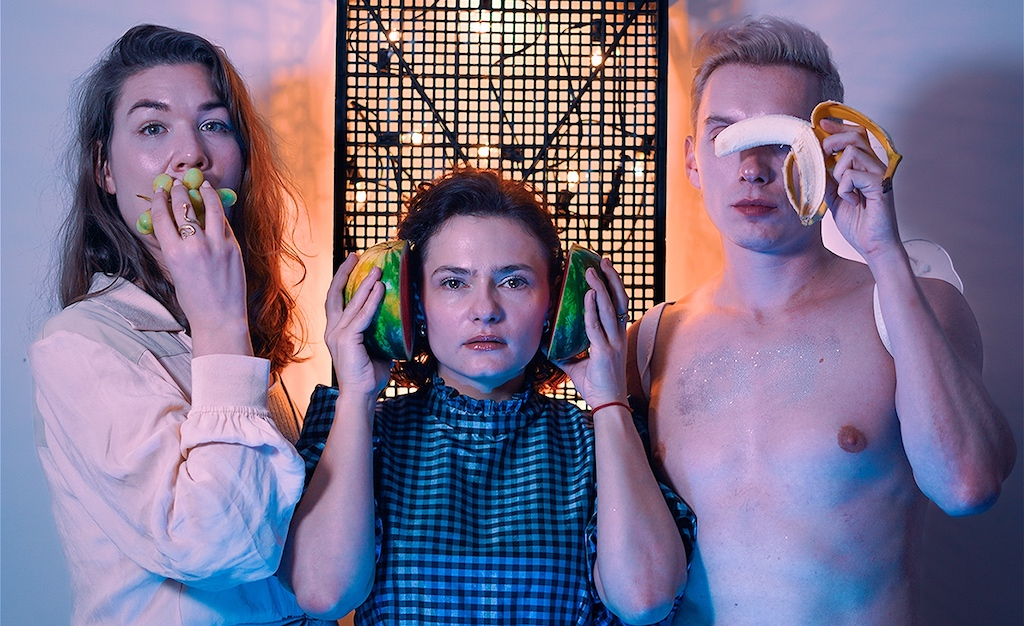 Although performers Mimmi Bauer, Pat Dynowska and Michał Szpak, of theatre group Takadaja, utilise the expansive space of the Cavern well, most of their dialogue is missed, made more challenging by bad sound design and the various languages spoken. Experimental or fragmentary theatre can be great, but the issue here is that there are no connective threads, which culminates in a lack of substance. In one scene one sees the cast chew some fruit and spit it out (food wastage anyone?) and in another, Szpak is dressed as a fruit fly, buzzing around, trying to create humour. There are admittedly moments where the piece shows a little promise, such as when Bauer endlessly chases a spotlight, while, in another, Dynowska sits, everyone looking to her for action as she replies moodily, “What are you looking at? I’m just on my break”.