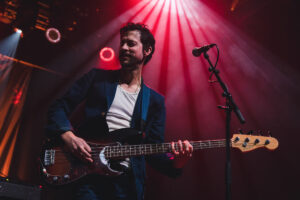 Hailed as America’s finest indie band, West Coast trio We Are Scientists are on fire here at Koko after a night at Southampton’s Engine Rooms. They seem to occupy a larger space than the stage affords, if such a thing is possible. The backdrop behind them is the cover of their latest album, Lobes, released this January. The lights are deep blue and red; the energy offstage is electric, driven by eager banter and eager moves. There is a charm to these guys – a kind of goofy, likeable earnestness. You would definitely want to be friends with them in high school, if you could get a word in (they really do like their chats between songs). They are also very, very funny. Visually they work well together too: there’s a brotherly vibe here.