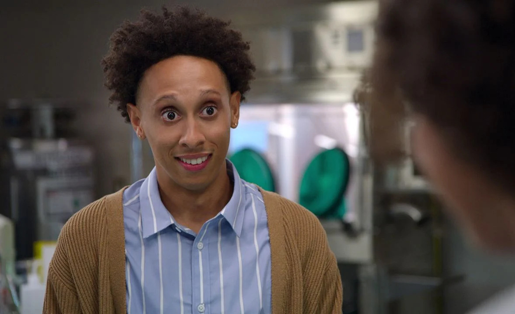 Absolutely not – I did not learn anything! But what’s really cool about that, though, is that Emma and Rachel actually had a real-life scientist on-set teaching them how to interact with the tools, like the microscopes and everything else, but Malcolm and myself don’t know what we’re doing in the slightest, which I think is so awesome, so funny and so on-brand for myself.