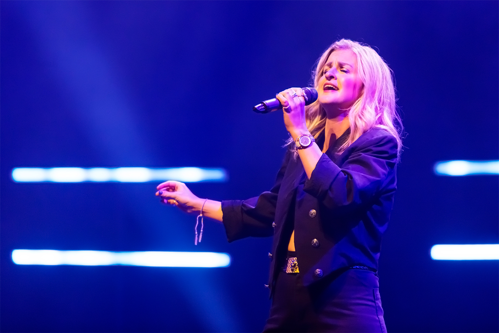 The lights softened to a deep blue as the singers performed some moving acoustic ballads, including the pretty track Safe, lighting up attendees with twinkling spotlights and sending a reassuring ripple around the room with their relatable messages.