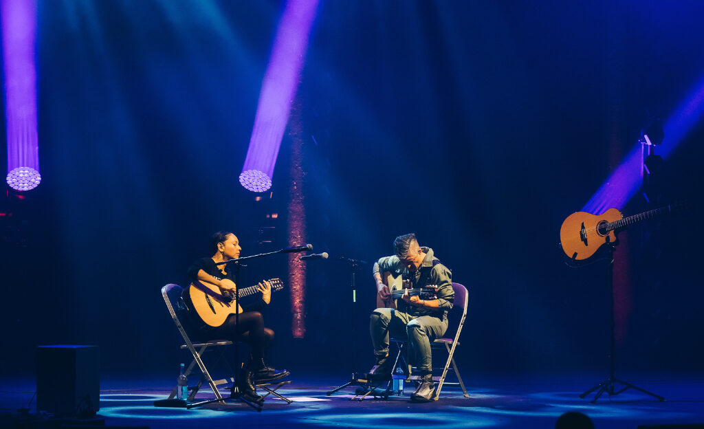 In Between Thoughts… A New World, which they’ll be touring in the upcoming months, offers another expansive lens to a kaleidoscopic repertoire; make no mistake, these two are consummate professionals. While Rodrigo y Gabriela encourage a welcoming intimacy at their shows, there is nothing casual about their work – the artists’ decades of collaboration have brought them not so much a repeated familiarity as an uncontrived fluency. One gets the impression that their compositions take new directions each time they are rehearsed, each live performance thereby becoming a one-night-only affair. And these new songs – in such practiced, practiced hands – are made for the stage.
