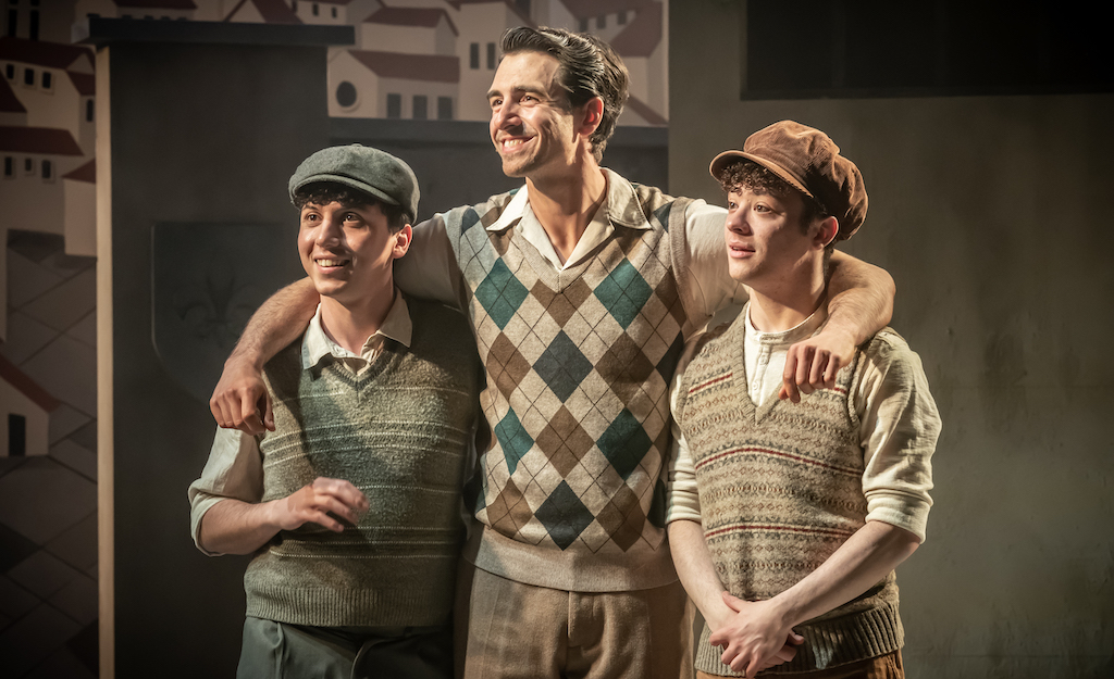 The production makes good use of the space at Charing Cross Theatre, with incredibly detailed sets that depict the Florence backstreets and effectively switch between the intimate confines of the church, where they hid hundreds of children, to the cold headquarters of Mussolini’s Black Shirts. The latter often stalk through the audience in their imposing, dark uniforms as the heroes on stage battle their consciences to define what is right and wrong. This is very effective in bringing the audience into the world of the show, helping us to feel their fears.