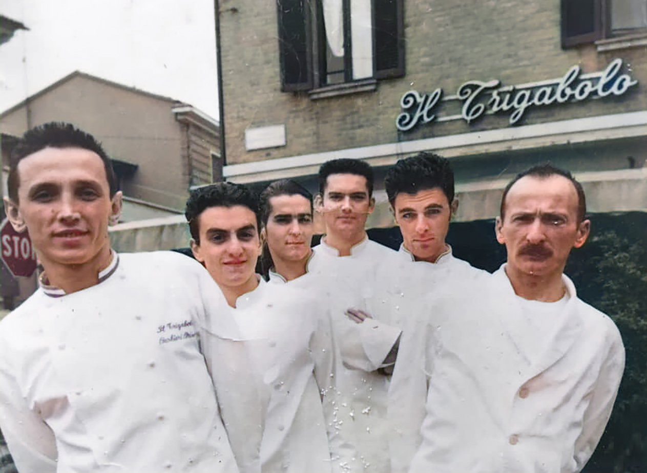The gastronomic orchestra leading this spectacle will be none other than the original Trigabolo brigade – chef de cuisine Igles Corelli with Bruno Barbieri and Mauro Gualandi, as well as Marcello Leone, Pierluigi Di Diego, Elga Cavallini and Sandro Trioschi. The front-of-house team will be headed by Giacinto Rossetti, with Bruno Biolcati, Flavio Errani, and Marco Merighi.