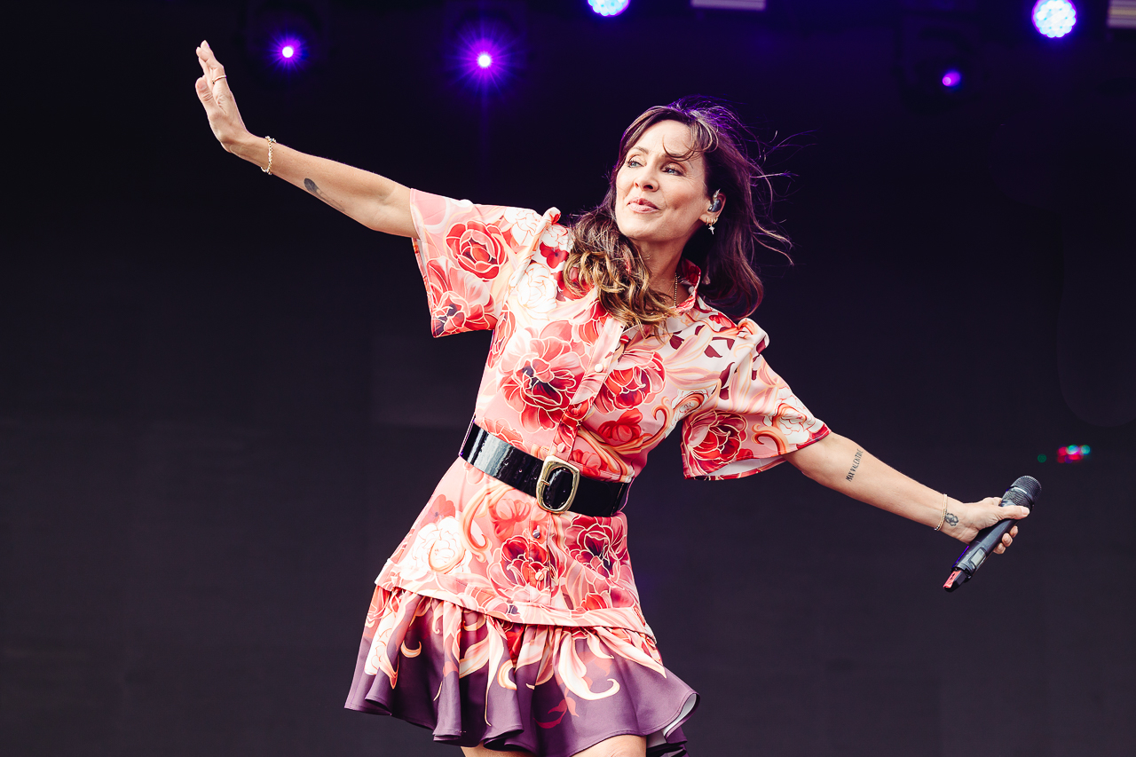 The weekend began with an upbeat injection of pop. The weather kept up to welcome Natalie Imbruglia, who was off to a bumpy start with a delayed arrival and missing instruments, but that’s when a musical host – i.e. James – comes in handy. He provided the tools, and while the time was lost, Natalie made up for it with an enthusiastic performance including Shiver and Torn, the latter’s vocals strongly supported by the crowd. With committed lyrics and low tunes, Baby Queen excited young attendees with the rhythm of Internet Religion and Raw Thoughts; Buzzkill, on the prosaic side with words delivering a strong message, turned into a resounding singalong.