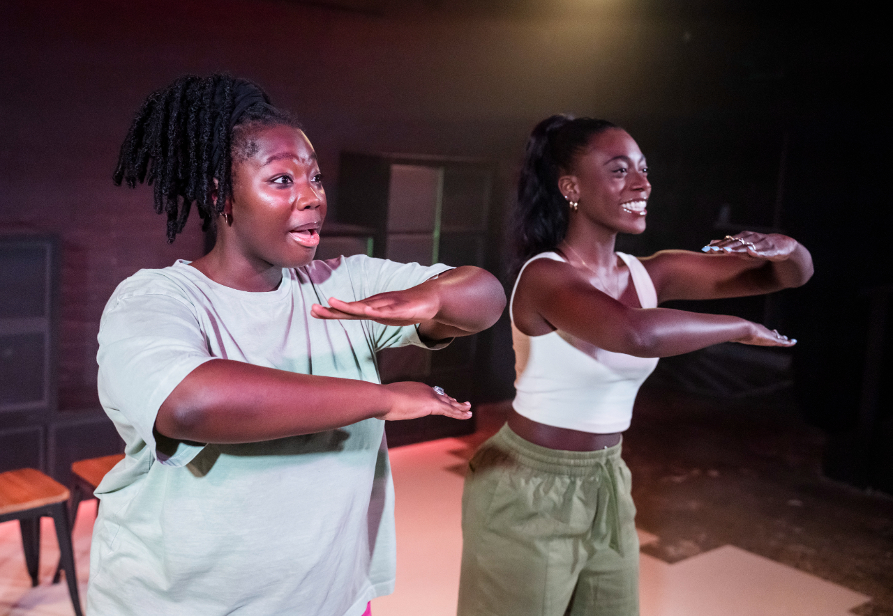 Leah St Luce, who plays Carleen, and Jadesola Odunjo, who plays Crystal, swap in and out of roles flawlessly as they also adopt the voices of Carleen and Crystal’s online audiences. Voicing ever-conflicting opinions of critics and fans alike, their performances as the Greek-chorus-like audience are clever and sharp. The intentionally ridiculous praise and criticism they heap upon the influencers is highly amusing, yet also serves as a critique of cancel culture’s base in the idea that followers have any true knowledge of/intimacy with the people they watch online.