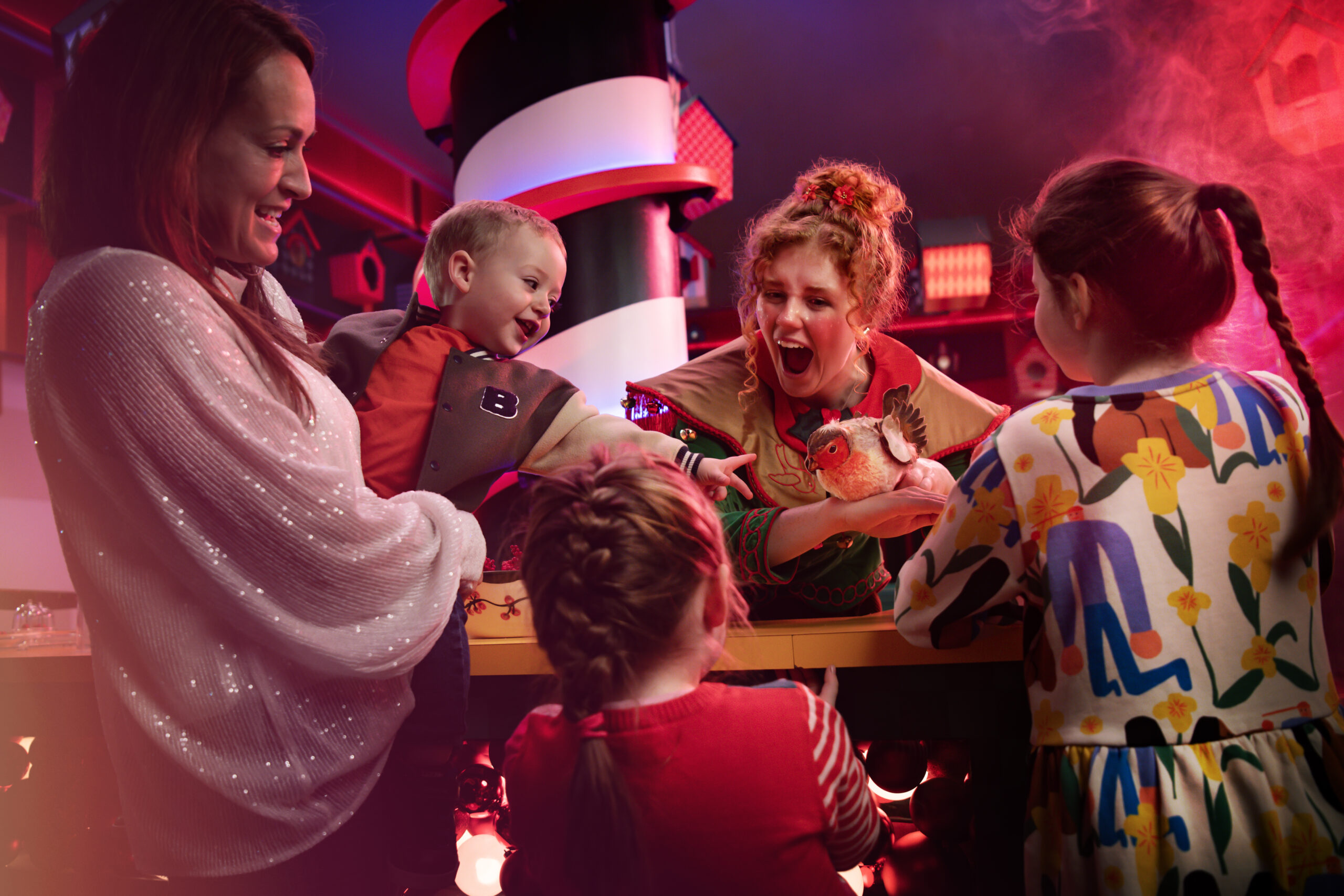 Entering the Old Bauble Factory, you are welcome to some complimentary mulled wine and hot chocolate, evoking the spirit of the festive period. The opening room feels like a Grinch set, with bright red lighting and puppet robins in birdhouses, flying on zipwire. The following room is even more enticing, as we make ourselves comfortable on a makeshift train that feels like it’s moving, as it shakes and whirs realistically, with screen visuals of the starry night, flying above the clouds. The train is long, and it’s worth mentioning that the storytelling would have had a greater effect if there was more than one elf; having a single character made it difficult for people to hear at both ends.