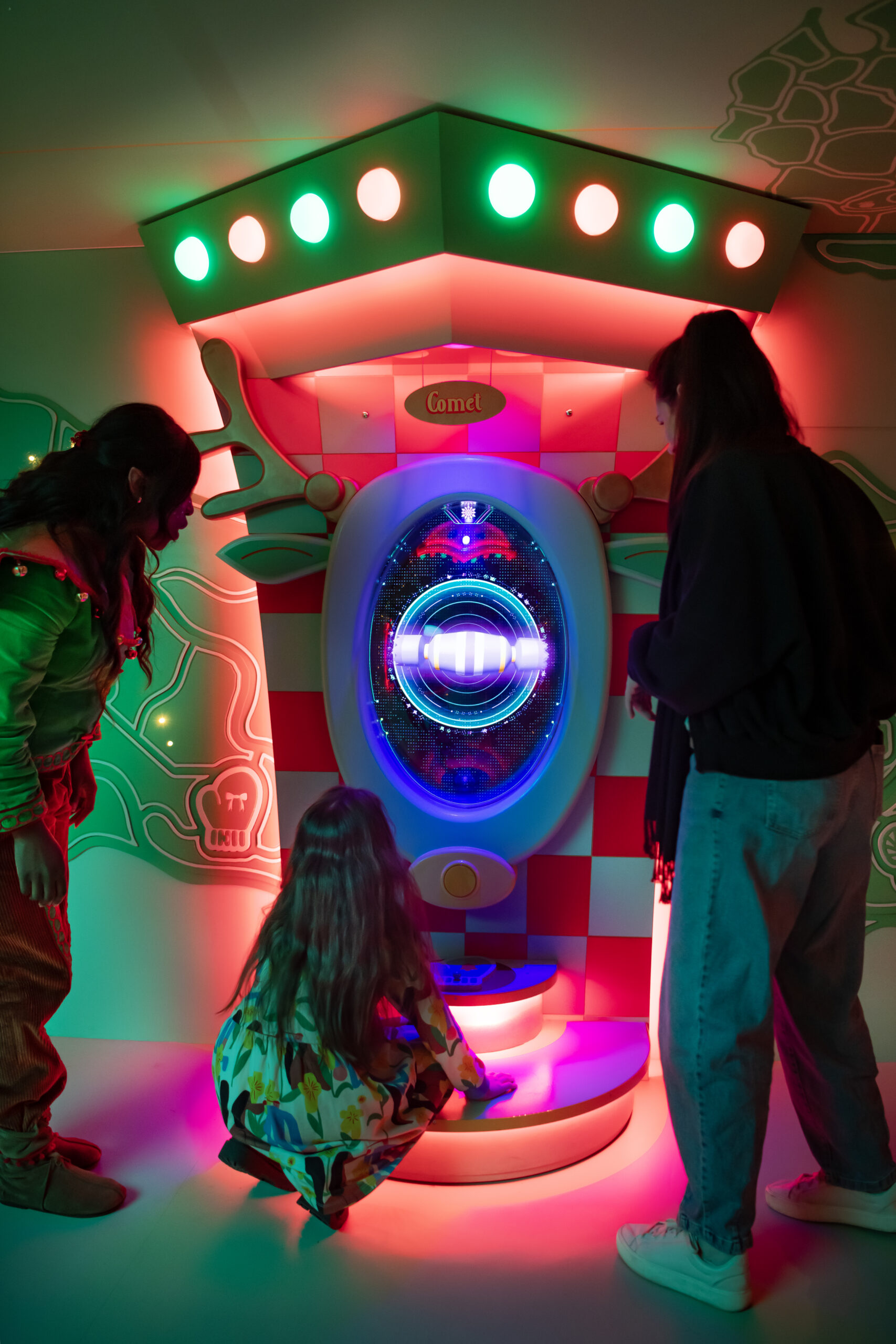 In the Merry Maps of Everywhere, we are asked to look at coordinates on machines and press a big yellow button simultaneously, which expels a jigsaw piece to fit on the table of various Christmas-related objects. There is some frenzy, and it’s nice to see the little ones with their parents, but once more, the communication lacks clarity, which would have been further improved with the use of microphones.