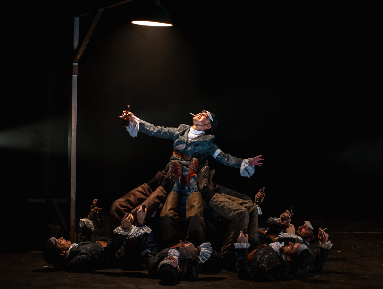 Although there are glimpses of comic relief, these are short-lived. One scene shows a dancer painting his face white, combined with flat cap and well-to-do tie, beer in hand: “Cheers mate”. A stereotypical depiction of an Englishman is met with a chuckle, which slowly quietens as it becomes clear that there is a fine line between laughing with and laughing at someone.