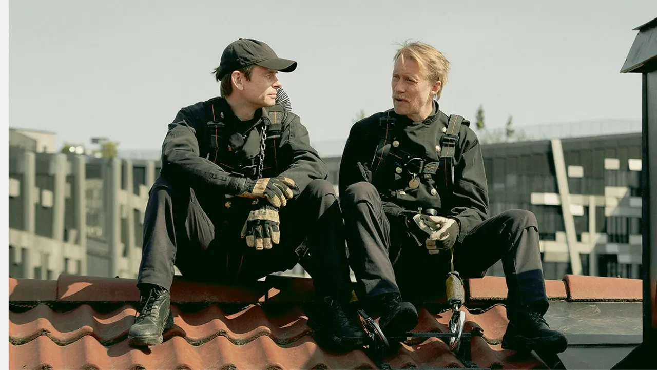 The men are revealed to be chimney sweeps, supposedly living and breathing good luck charms to those crossing their path, but through their profession, the audience is permanently confronted with different types of infrastructure. Staircases, balconies and construction sites are central visual motifs, but the cinematography equally makes use of interior designs of their respective homes. Immovables are the polar opposite to the humans traversing these spaces, who are governed by fluidity and instability.