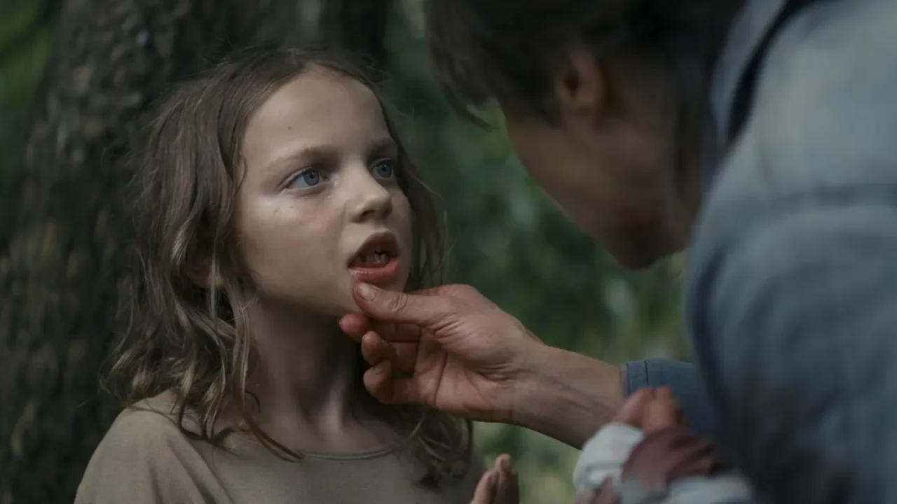 The film sees Mathilde Bundschuh star as Skalde, a woman who lives with her elderly mother Edith (Susanne Wolff) within a small community isolated from the rest of the world. Although it’s never explicitly stated why the villagers have a mistrust for outsiders, scenes of Skalde finding eviscerated animal corpses alongside tales of harmful creatures hiding in the surrounding woods give some indication as to why they live the way they do. This also explains why the villagers show hostility towards Skalde after she takes in a young girl named Meises (Viola Hinz) when she appears outside her house.