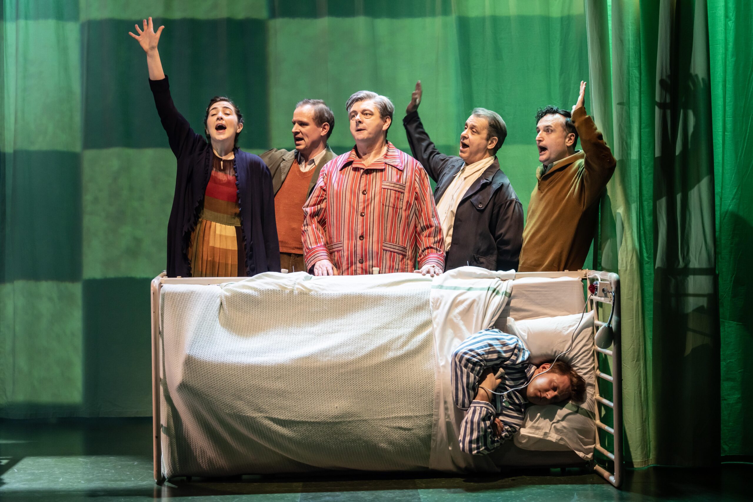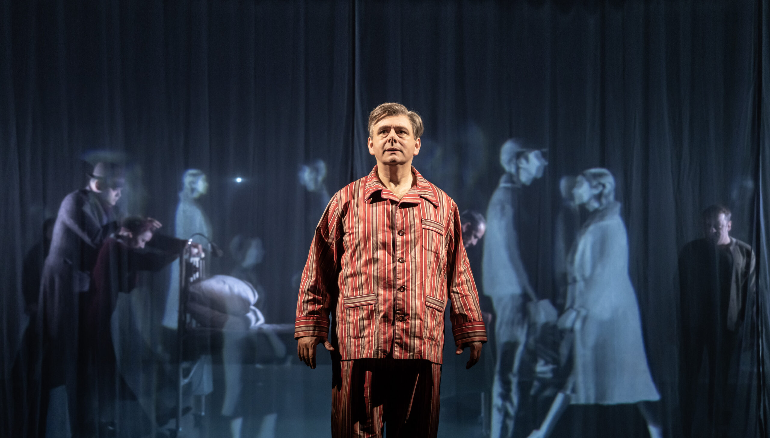 Directed by Rufus Norris, this large production sees the cast adeptly assume multiple roles, a fitting choice for a narrative where Aneurin hovers between consciousness and dreams, life and death. Actors seamlessly transition between roles, with family and friends morphing into medical staff. The set, designed by Vicki Mortimer, switches from hospital wards to debate halls and libraries. Projected screens layer upon each other, with rows of doctors appearing like a Greek chorus.