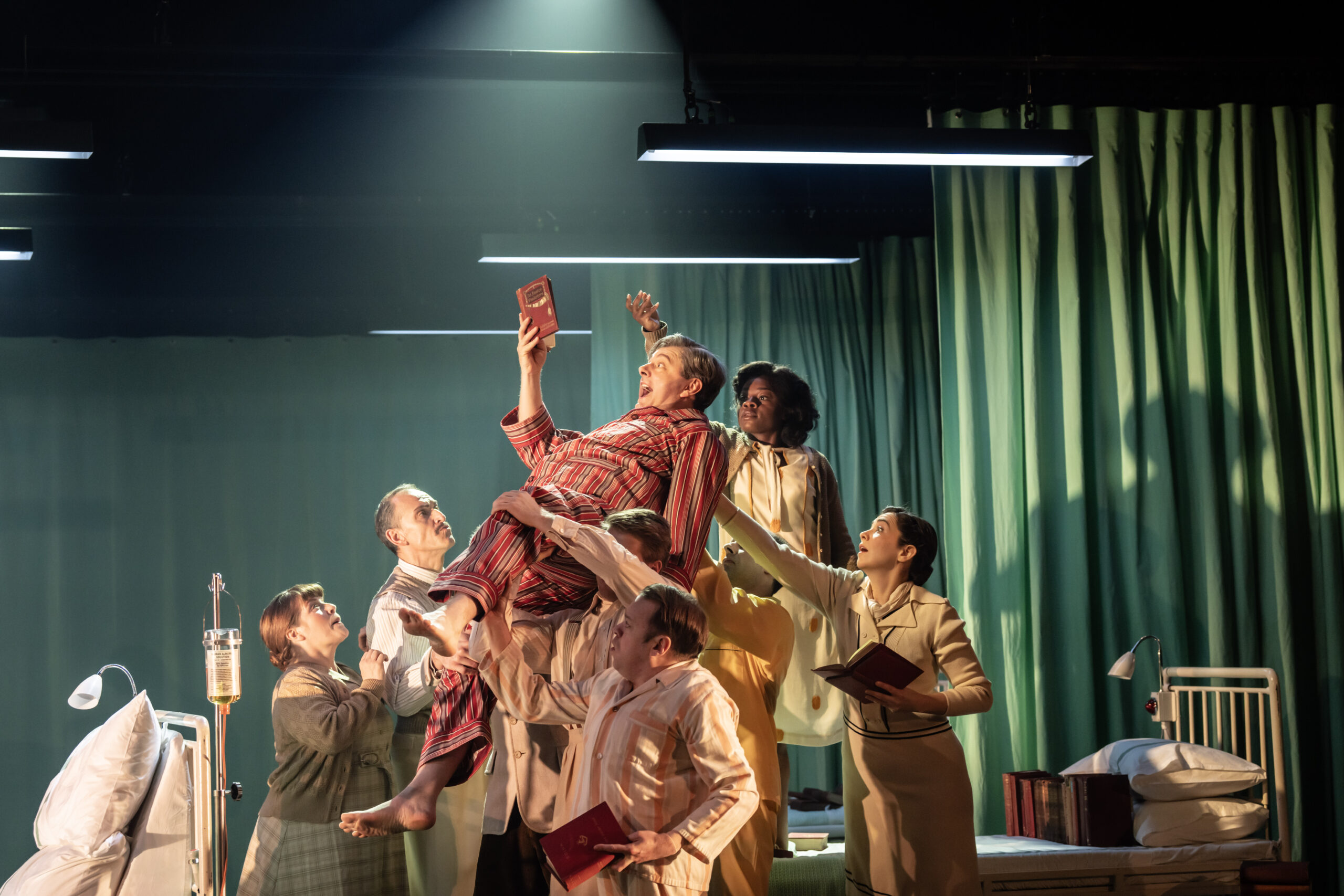 The show oscillates between the light-hearted and the tragic – it even indulges in a surreal musical interlude where Bevan, the ascending political ladder, transforms into a Sinatra-like singer. Parliamentary debates look like satirical puppet shows, with angry Socialists on one side, screaming at nanny-raised Tories puffing cigars on the other. At times, the play is also brutal. In a particularly harrowing sequence, we see Bevan, newly appointed as Minister of Health, besieged by a throng of destitute individuals. Their desperation, a result of a failing health system that left them and their families suffering in dreadful conditions, creates an indelible impression.