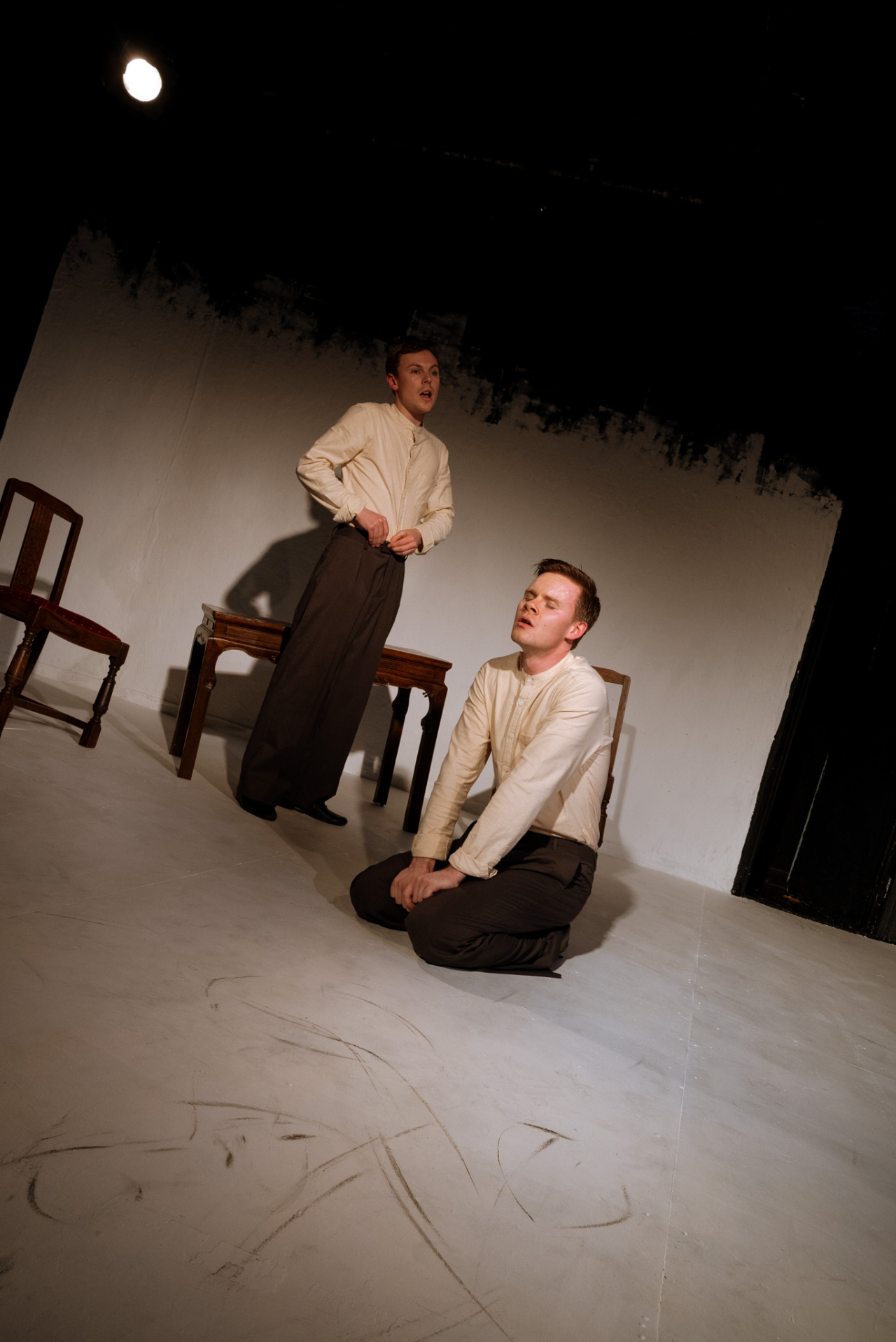 The show has a clever way of addressing the plight of acting, and how, (in the words of the cast), theatre is doomed. The matching costumes between Opinion 1 and Opinion 2 create an eerie atmosphere at times between the actors, as well as serving the purpose of being used for sexual innuendos and comedic relief for the audience. Lighting also doesn’t fail to serve its strategic use in world-building and storytelling alike.