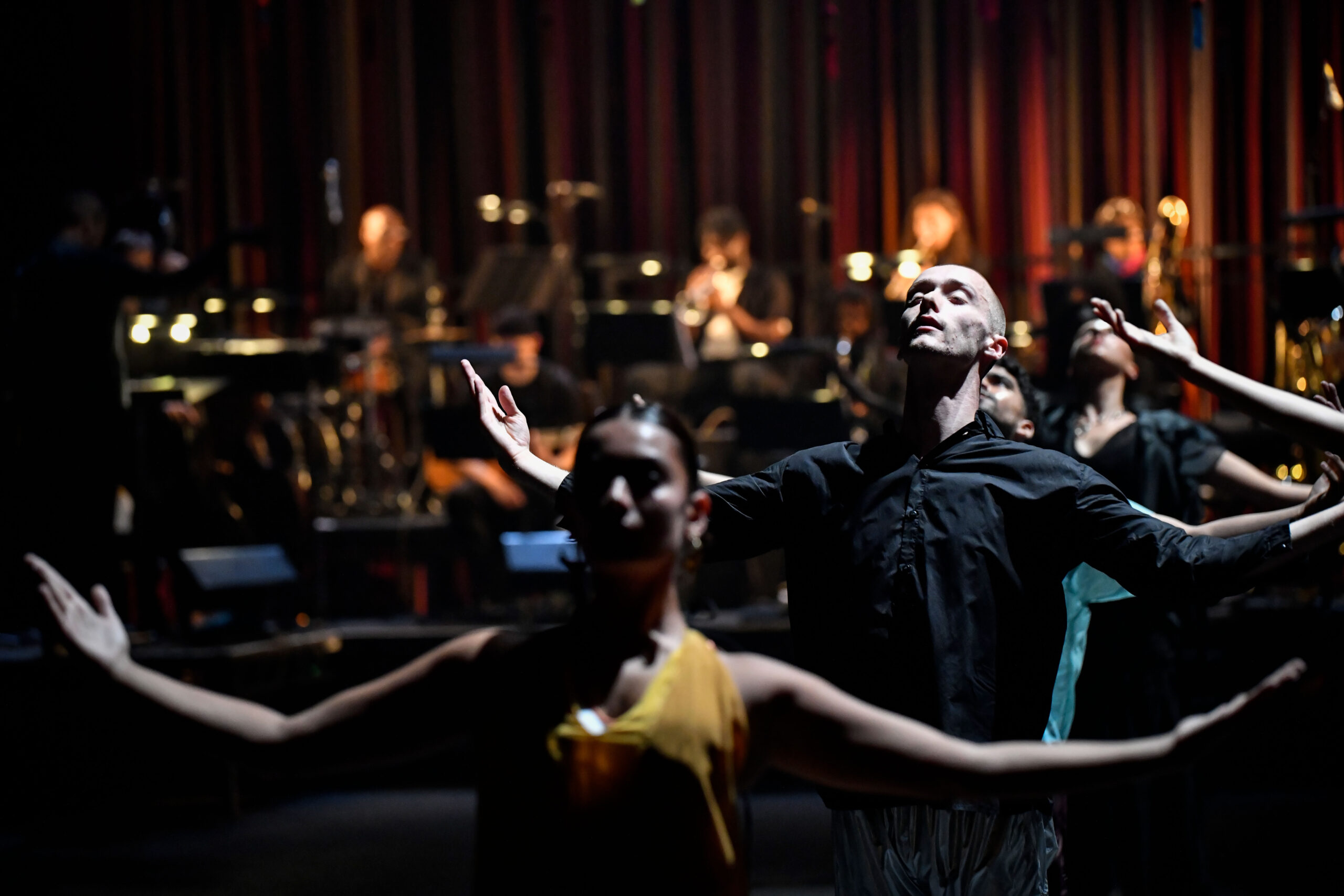 The highlight – apart from the beautiful musical rendition from Nu Civilisation Orchestra (led by Artistic Director Gary Crosby and Music Director Peter Edwards) – is when the Clod Ensemble dancers take a break from leading patrons through the moves and step into the spotlight themselves. Their movements mirror the music, mimicking the somewhat disjointed style of jazz so that onlookers are never quite sure what their next move will be, just as listeners of jazz can never be quite certain what the next note will be. With great skill and precision, the dancers make what to anyone else would be incredibly physically strenuous look easy.