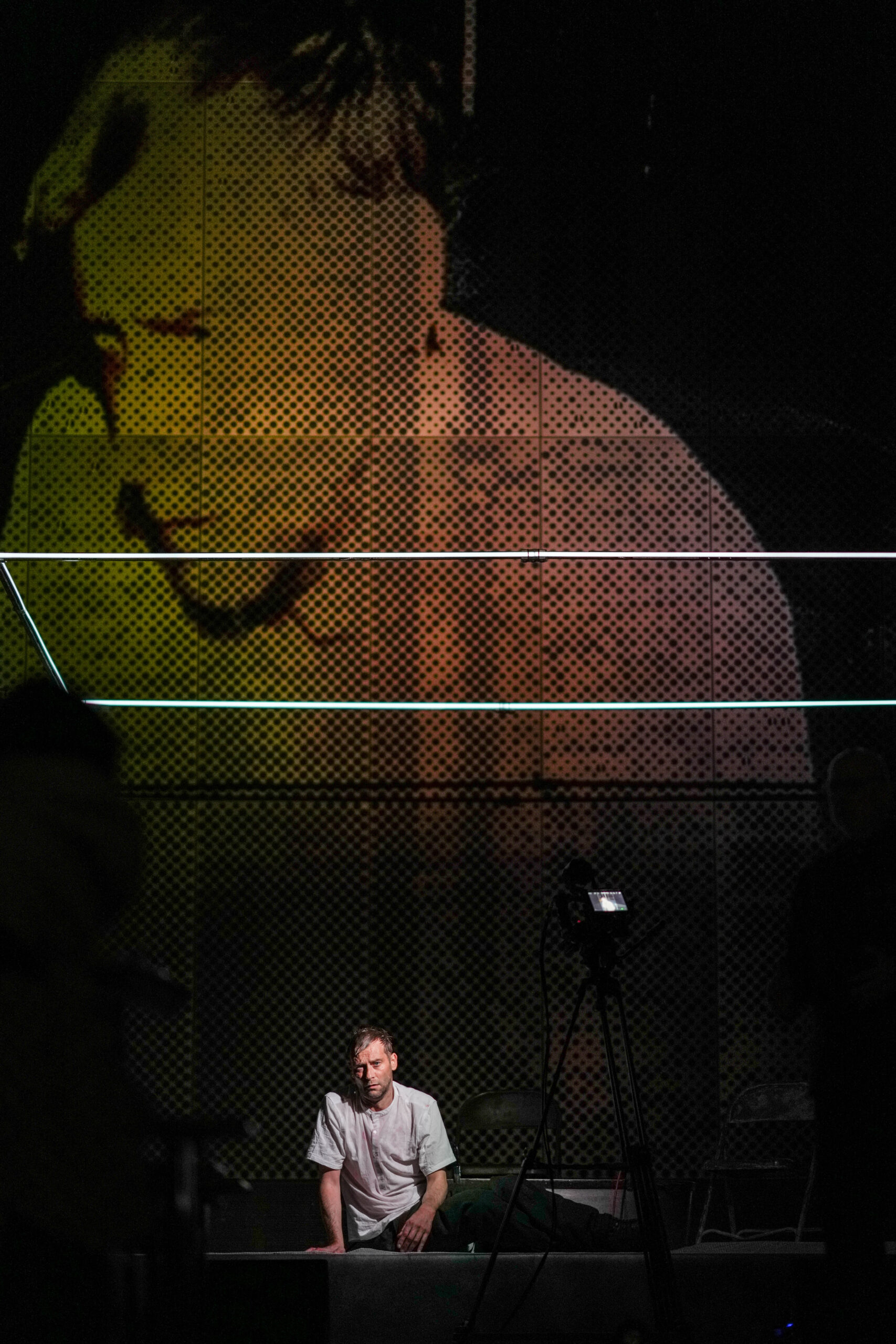 Viewers are then herded back downstairs to the bar area, where then can witness an abridged staging of the core plot of 1984 in 40 minutes. This is reduced to a couple of the love scenes between Winston (Joe Anderson) and Julia (Neetika Knight), plus the interrogation of Winston after they’re caught. Although the actors provide solid performances – Carter’s O’Brien is particularly compelling in his balancing of menace with eerie devotion to Oceania – there’s too little time to develop real empathy for the characters. Granted, they attempt to deliver some backstory (eg Winston’s fear of rats is introduced by Julia discovering a nest of them in the corner), but it’s lacking. Key elements are underdeveloped: O’Brien’s manipulation of Winston is never properly introduced, and Winston’s descent into thoughtcrime isn’t established. It’s all bare bones.