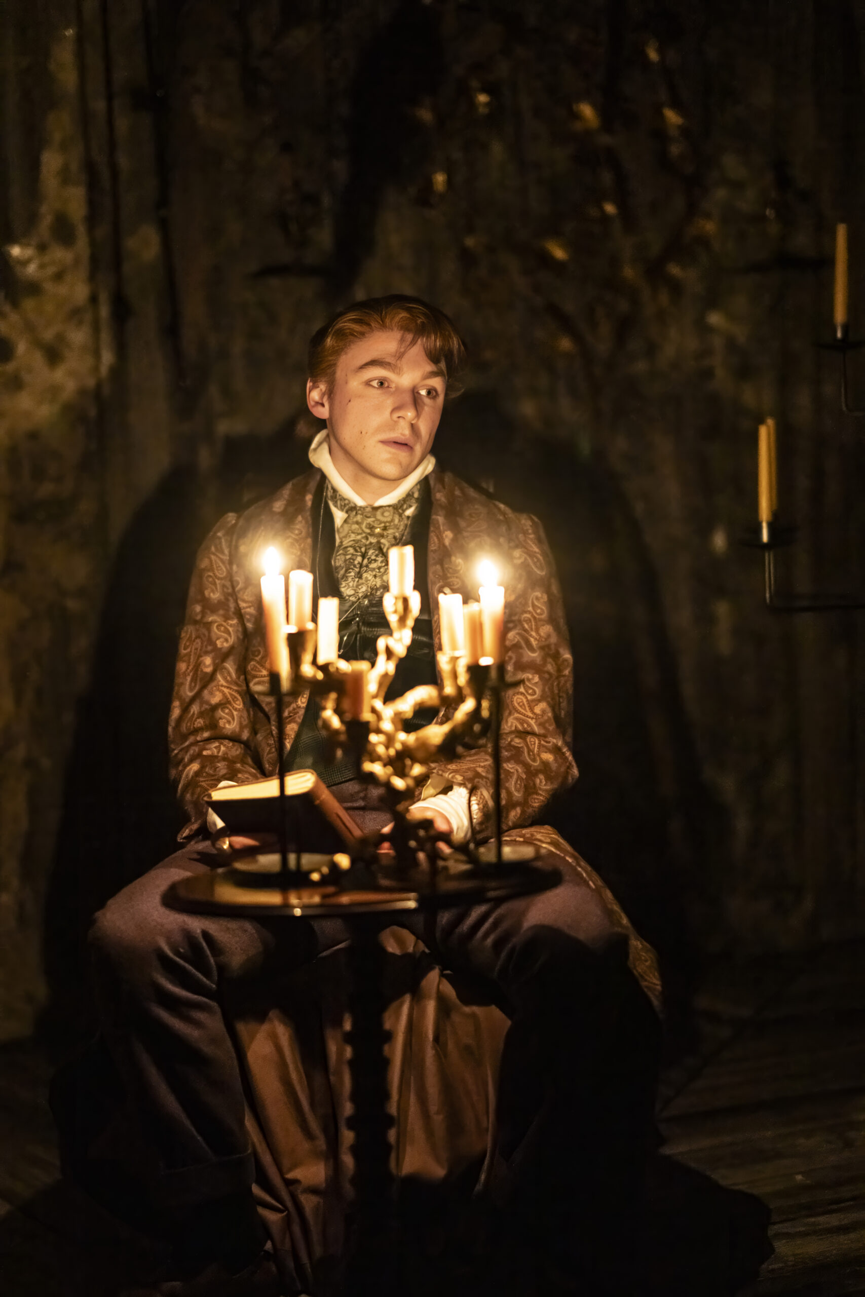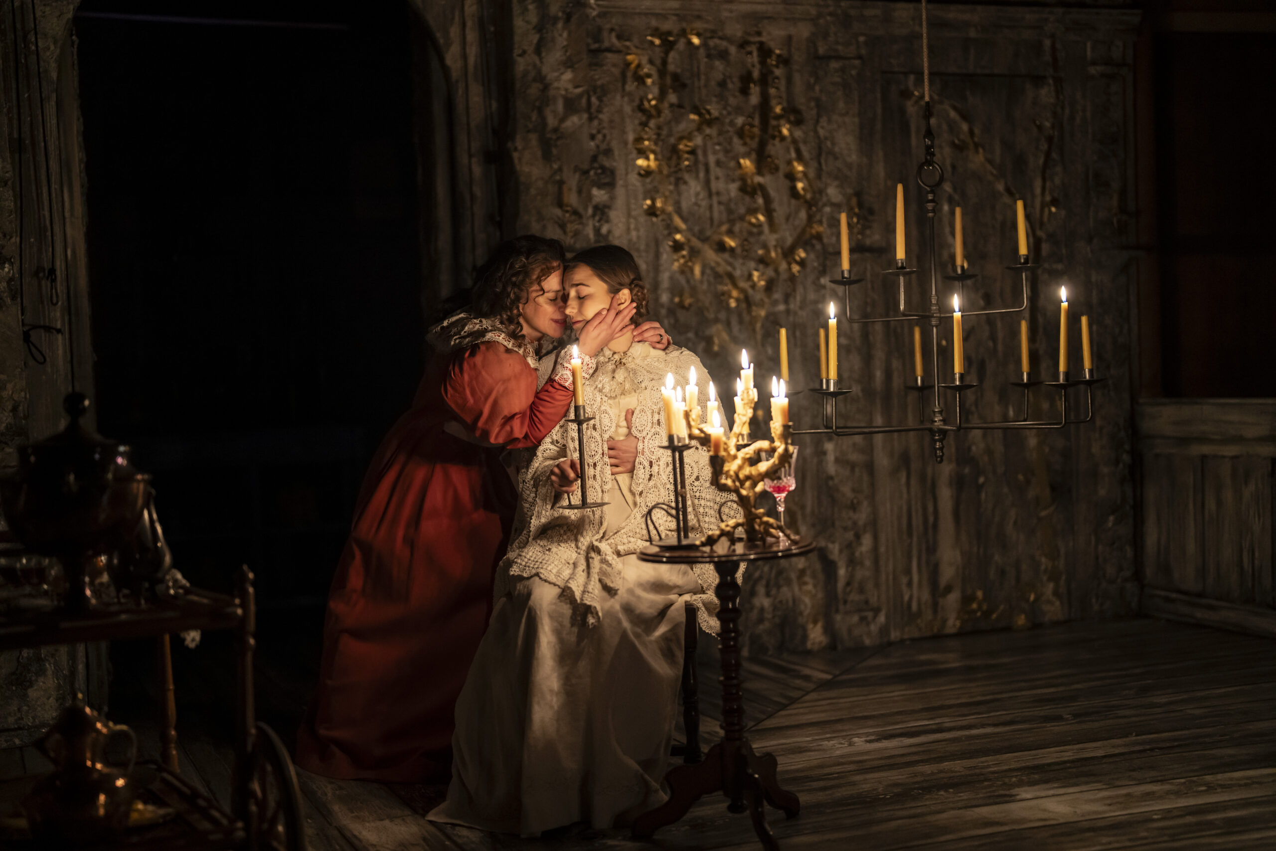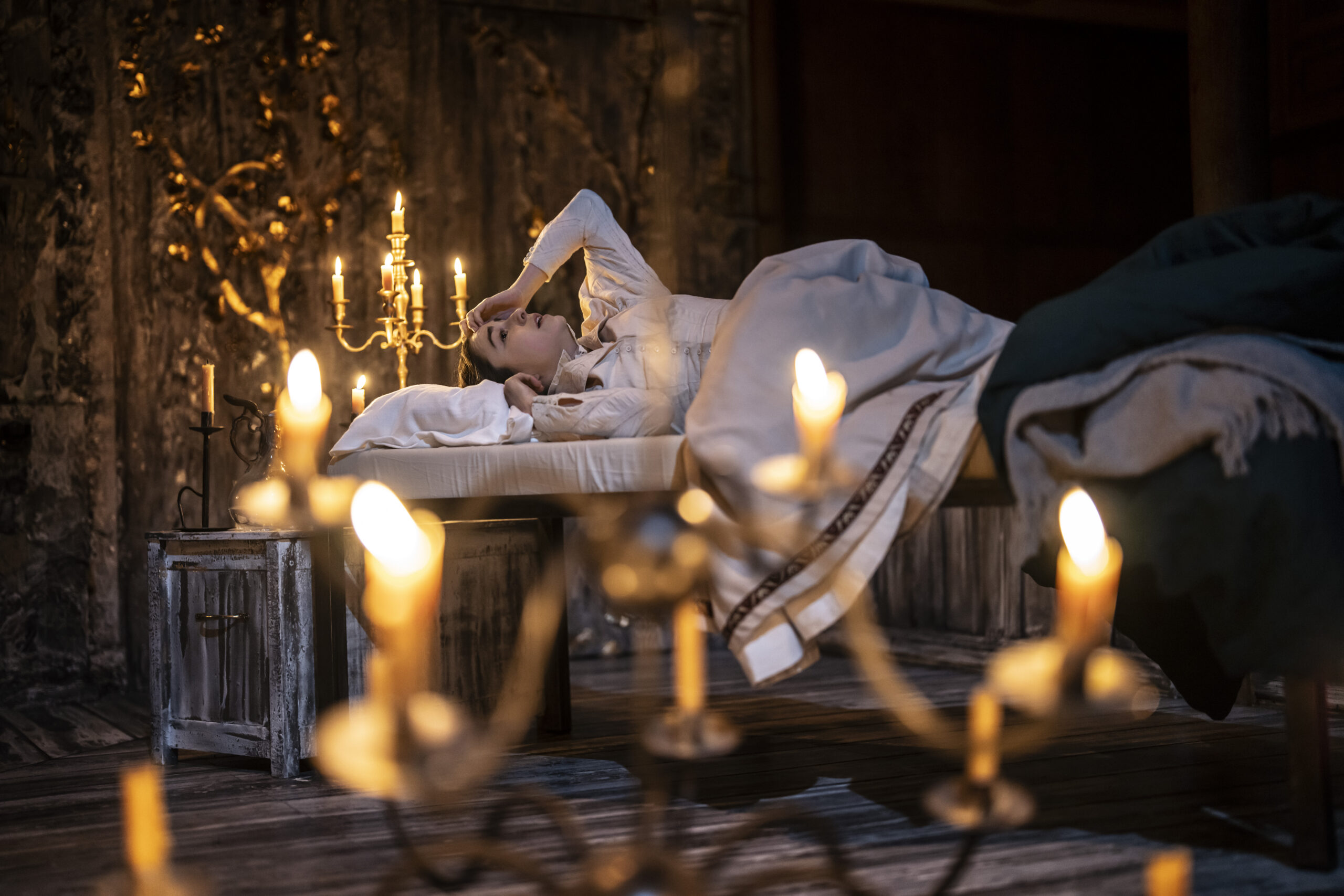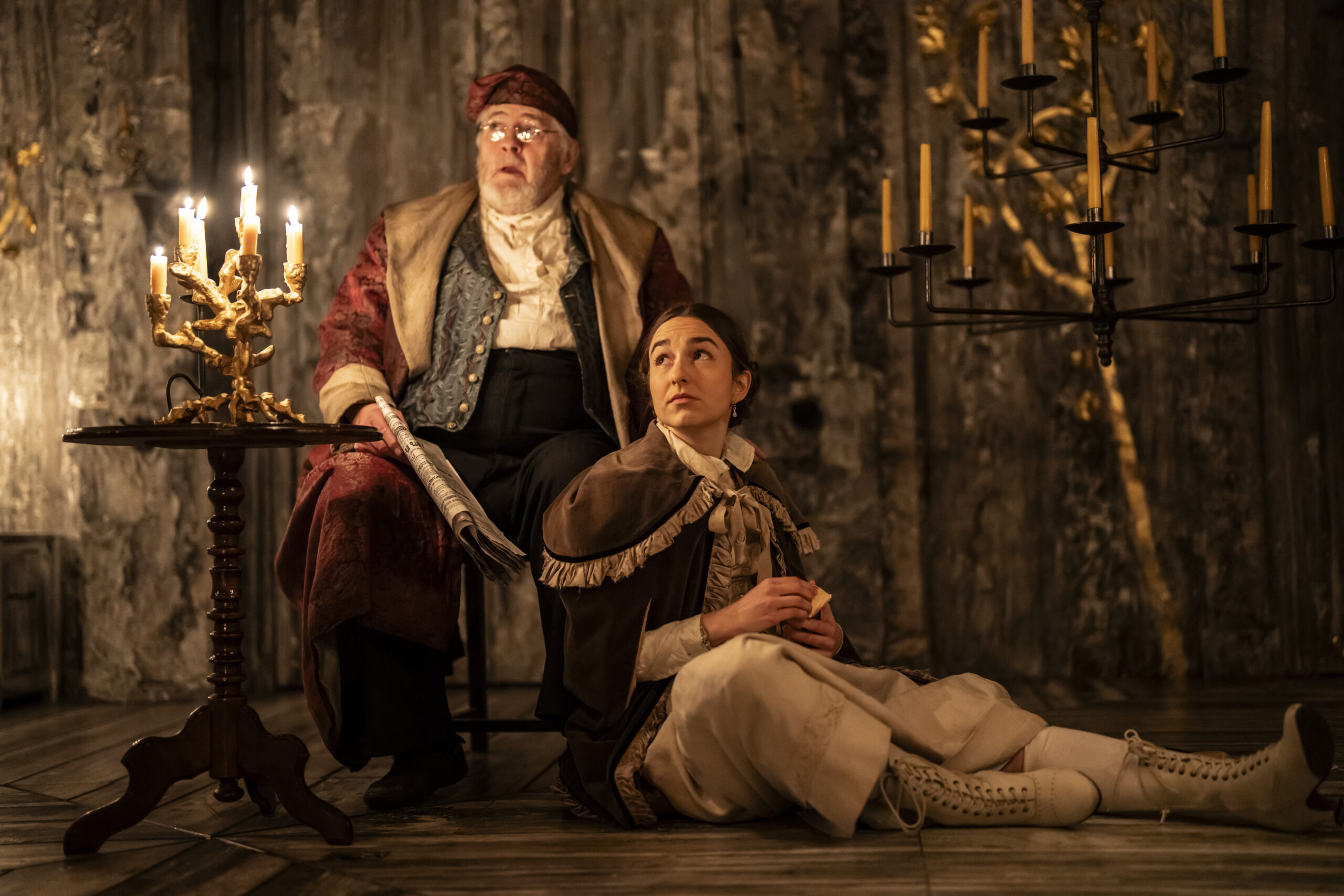 Coming to life amidst the slowly burning candles at Sam Wanamaker Playhouse – a perfect venue for Chekhov’s 19th-century classic – the eldest of the Prozorov sisters, Olga (Michelle Terry) exclaims, “Father died just over a year ago, on this very day.” She marks student papers, while the youngest Irina (Ruby Thompson) awaits her saint’s day celebrations, with Masha (Shannon Tarbet) inconspicuously reading a book in the corner.