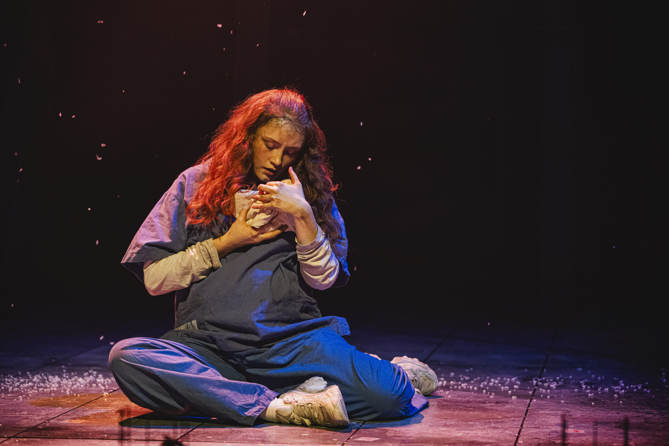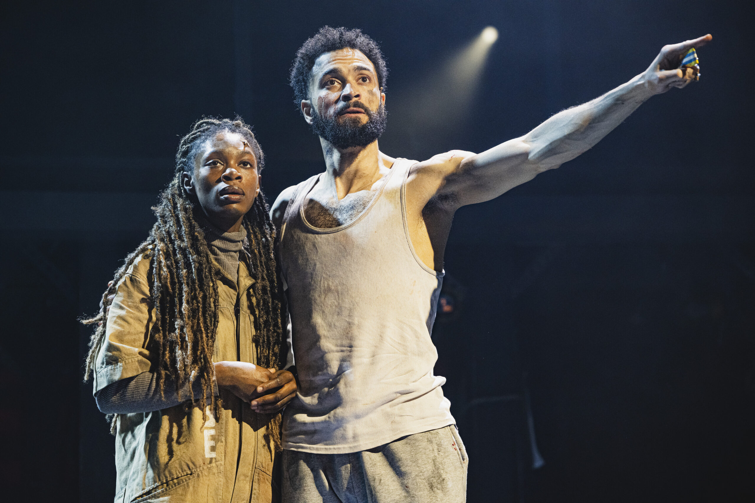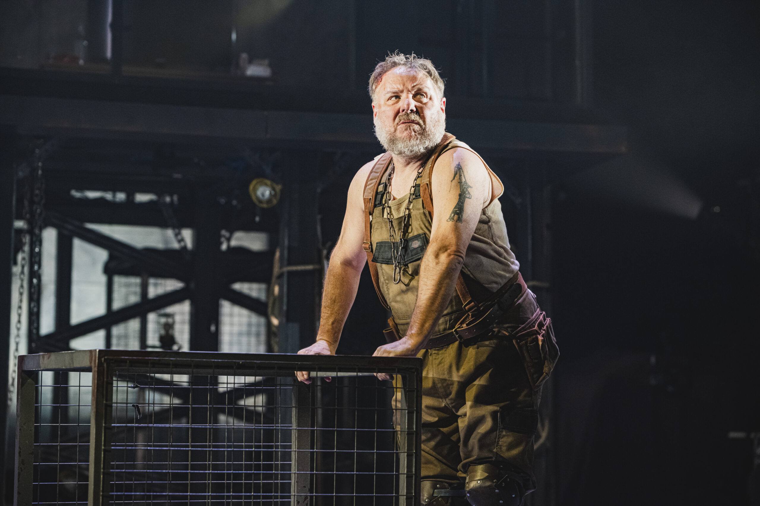There are no fun and wondrous animal puppets. There are no prosthetics, masks or fluffy costumes. And it’s all the more brilliant for it. The costume design (by Hayley Grindle) is visionary. It couldn’t be more simple but it’s incredibly powerful in its purity, showing the deprivation and the poverty that these characters have suffered. In particular, the pigs’ dirty wife beaters frame their branded flesh perfectly.