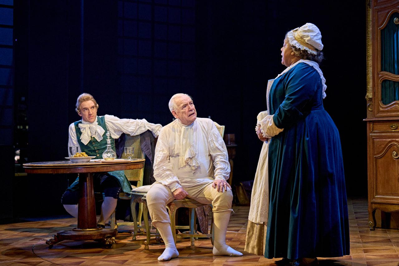 It’s a big performance, and it can feel – especially in its strained first act – as if Trevor Nunn’s production is largely content to be swallowed whole by it, permitting a procession of wholly functional supporting roles (Jamie Wilkes as the earnest scion of his father’s musical legacy; Nicole Ansari-Cox as the composer’s predictably long-suffering spouse) to set the board before Bach comes blowing through to knock it down. These roles are capably performed, but the play is so occupied with Bach – and we the audience are already so comfortably assured of the righteousness of his position – that it can often feel as if Cox is in an echo chamber alone, with the same push-pull dynamic doomed to repeat itself with all his scene partners. Bach will speak his mind unfettered and unafraid of royal retaliation, and those close to him will implore him to stop being so stubbornly incautious, bowled over all the same by their love of the man’s uncompromised ways.