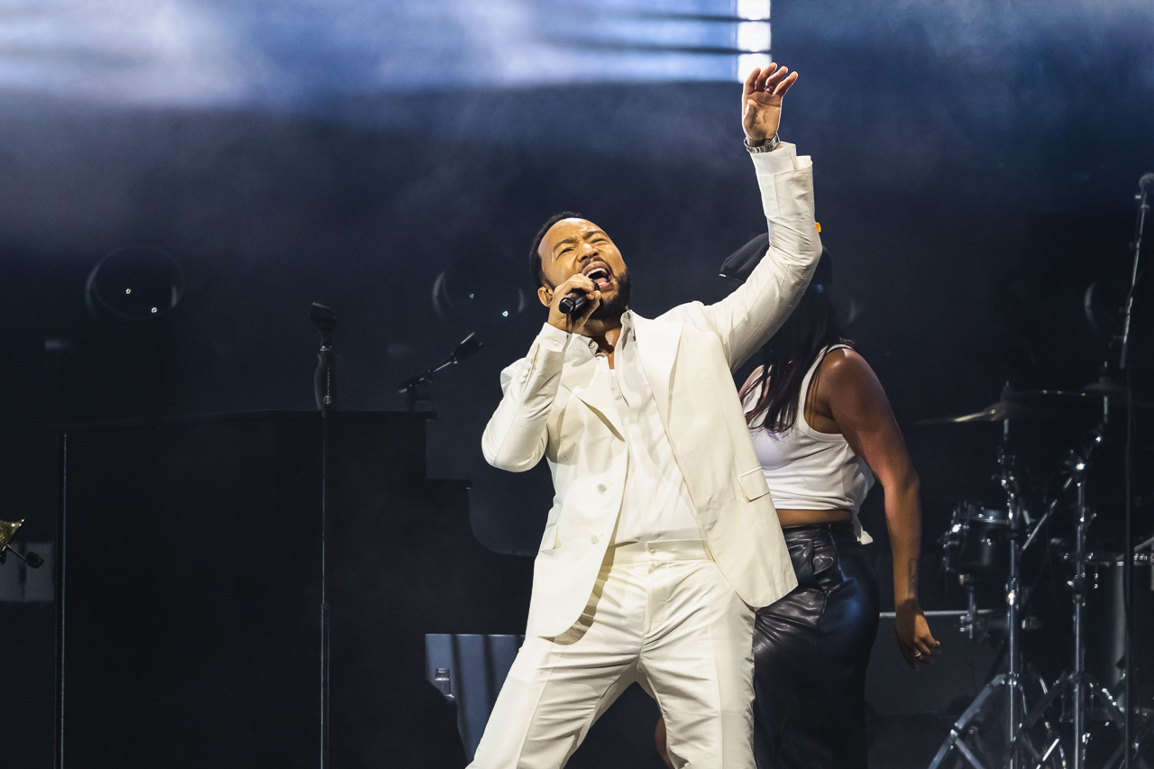 He takes it back even further, bringing out Corinne Bailey Rae for a cover of Roberta Flack and Donny Hathaway’s Where Is the Love?. Rae then takes the mic solo for the classic Put Your Records On. The set is laced with music’s favourite drug: nostalgia. However, Legend isn’t stuck in the past. What he is is an artist who wants you to know his influence. Reminding a crowd that may remember him more for modern hits like I’m Gonna Lose You of his lasting legacy. Legend wants you to know he’s your favourite artist’s favourite artist to have in the studio.