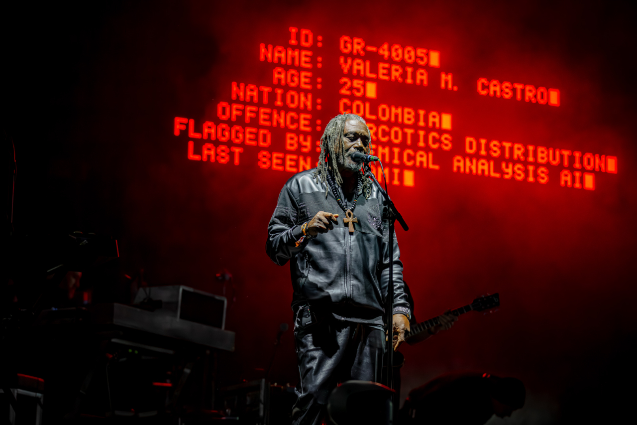 Massive Attack, who are lauded for their unwavering support of Palestine, commenced the evening on a sombre, yet particularly important note by displaying a two-minute video on the big screen on stage highlighting the suffering of the Palestinian people including statistics on the death toll, amount of people displaced as a result of the bombs that are given by Western governments, homes and hospitals destroyed by bombs and the humanitarian crisis which has led to a vast majority of their population unable to feed themselves. They also debuted their collaboration with the Palestine Solidarity Campaign, with all donations going towards the movement. The band led chants of “Free Palestine!” to which everyone in the crowd joined. The band dedicated every song performed towards the people of Palestine.