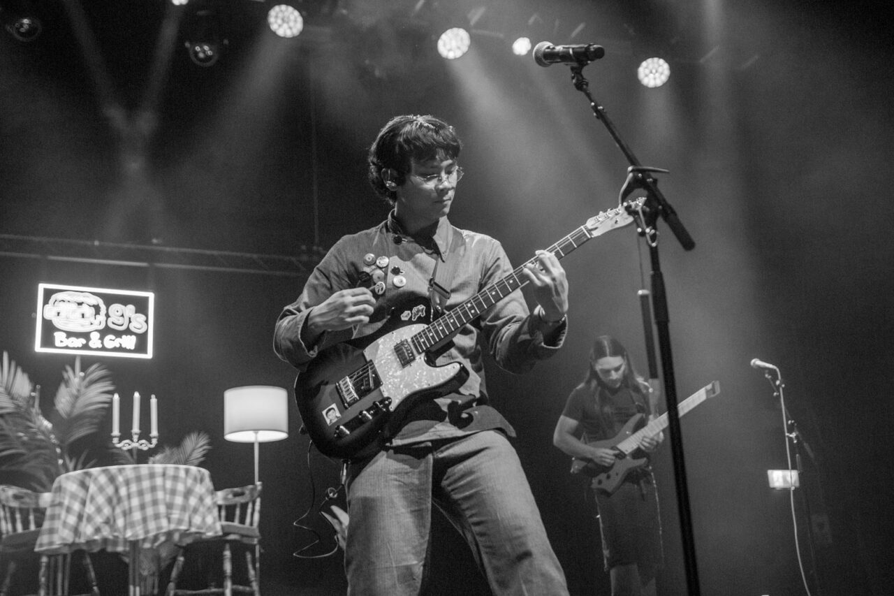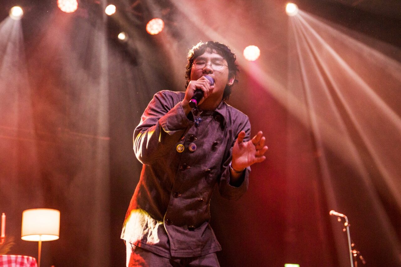With his debut studio album, Backflips in a Restaurant, out in the world, Grentperez leans fully into the restaurant metaphor. The stage is dressed accordingly: a table at the centre draped in a red-and-white chequered cloth, chairs arranged just so. At first, the mood is gentle, even slow, until he bursts forward. From the start, his showmanship shines through: he’s playful, dynamic, always in motion. He makes it his mission to keep his audience entertained, and he succeeds.