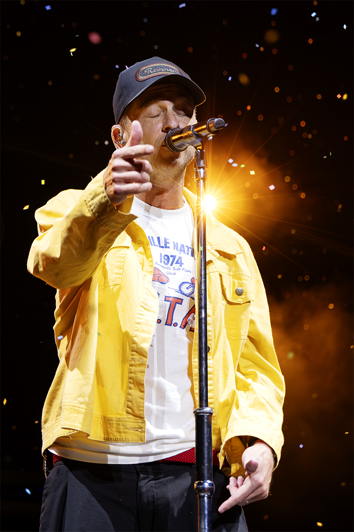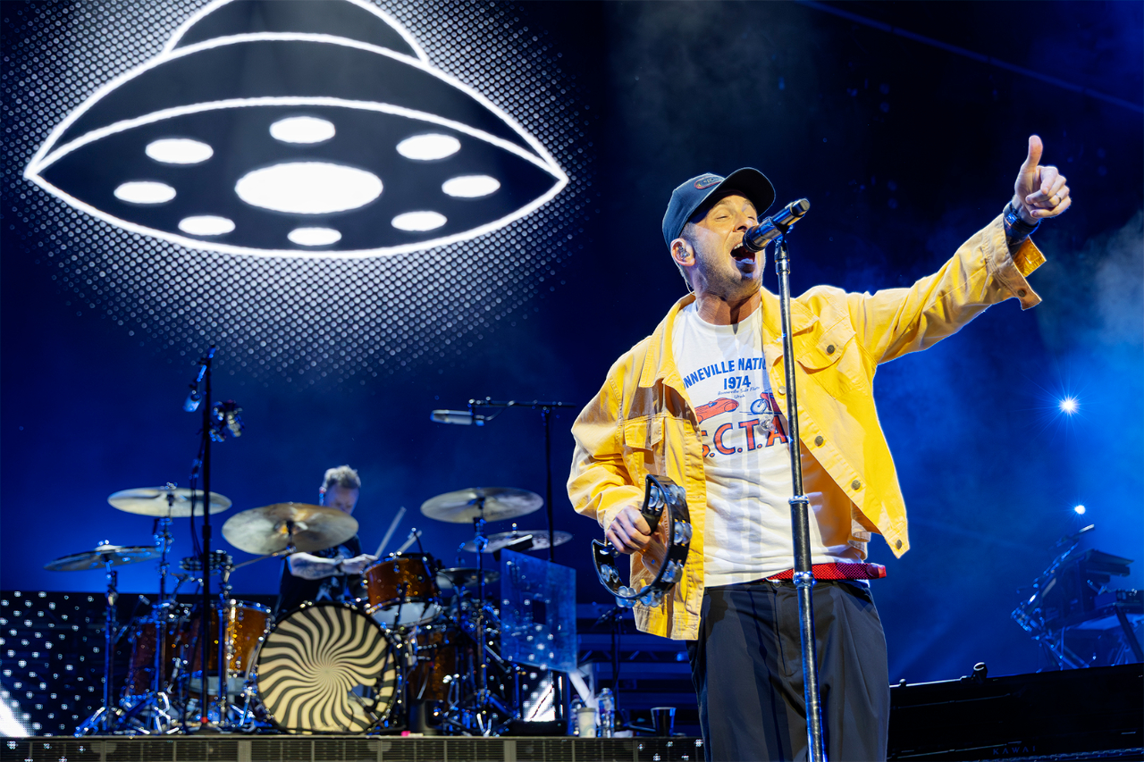 The night draws heavily on the band’s history. Tedder speaks of their early struggles, of Apologize’s “accidental success”, and of being dropped by their label before clawing their way back. That same hit is placed mid-set, deliberately so, as the singer admits that its softer sound didn’t quite align with the band’s intended sound. It’s follow-up, Can’t Stop, is everything that Apologize wasn’t: bold, unfiltered stadium pop rock that shows a band now entirely comfortable with their expanding sound. It feels like the older sibling to Stop And Stare, an earlier highlight and a song that Tedder credits with “saving the band” from disbanding years earlier.