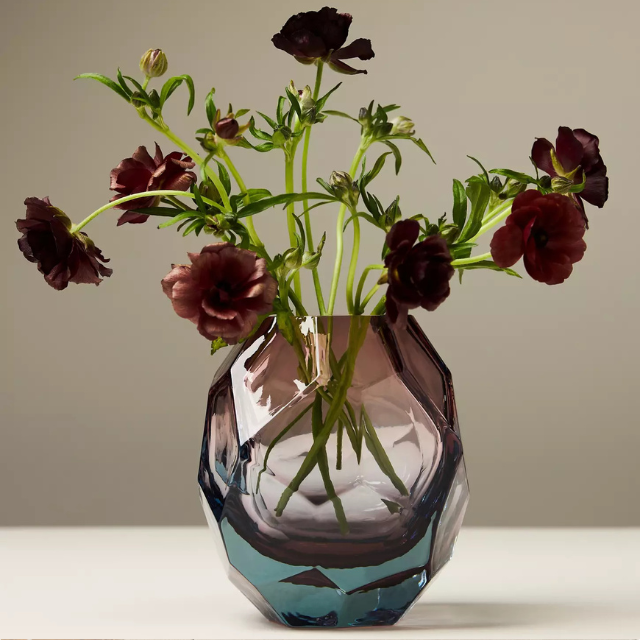 Fresh seasonal blooms or dried grasses will look all the more striking in this statement vase. With its jewel-toned cut glass, it adds a touch of sophistication to instantly elevate a mantelpiece or dining room set-up.