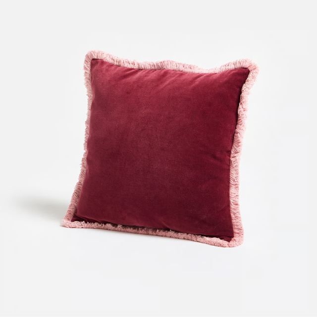 Issey Burgundy Velvet Fringed Cushion Cover, £28, Oliver Bonas