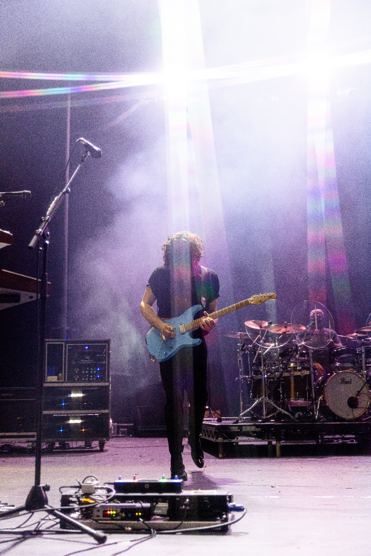 The group meet the chatter of the audience with flashing lights and a deep bass that shakes through the venue’s floor. Starting with the new record’s title track, Lyle’s vocals are impressive, matched by complex guitar work of tour guitarist Royce Whittaker. The first three songs play out with a light show that really captures the Bladerunner essence of their sound. When Shadows comes around, the crowd begins to warm up, especially after a long and entertaining saxophone solo from Justin Klunk.
