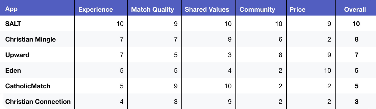 If one app can be said to truly reflect Christian values and genuine connection, it is SALT. Based on the categories outlined above, it stands out as the best Christian dating app available today.