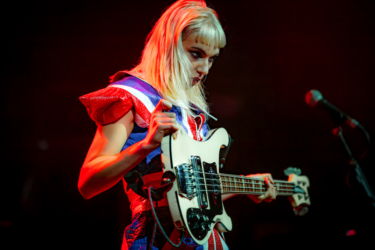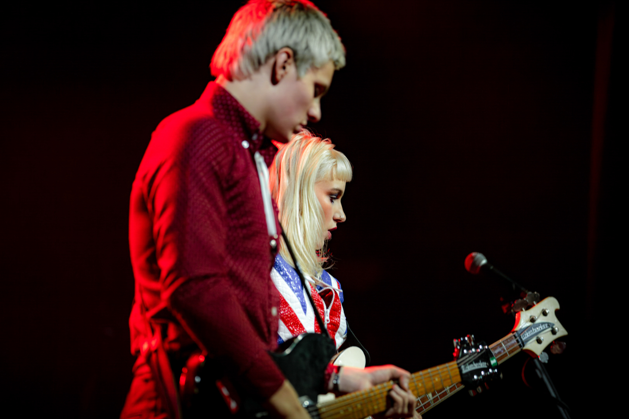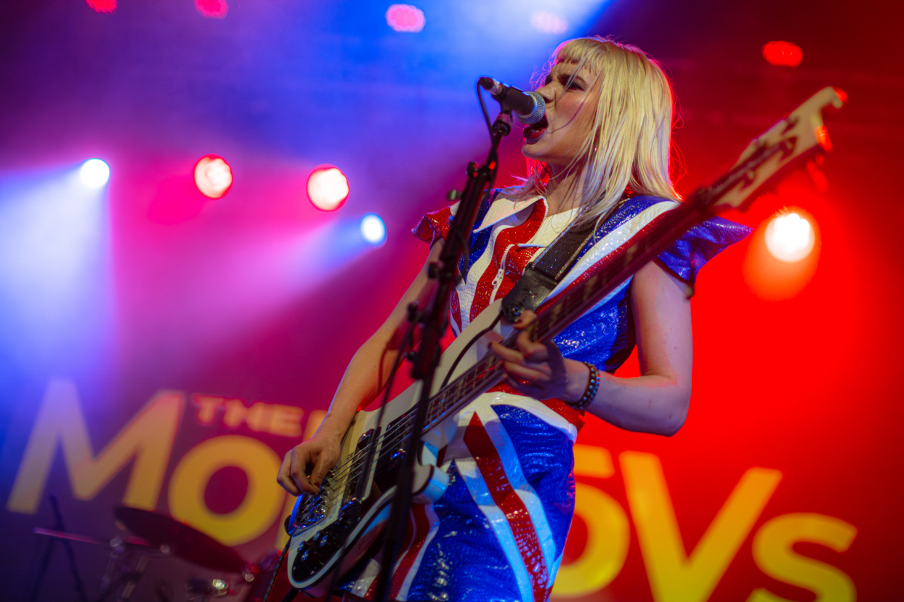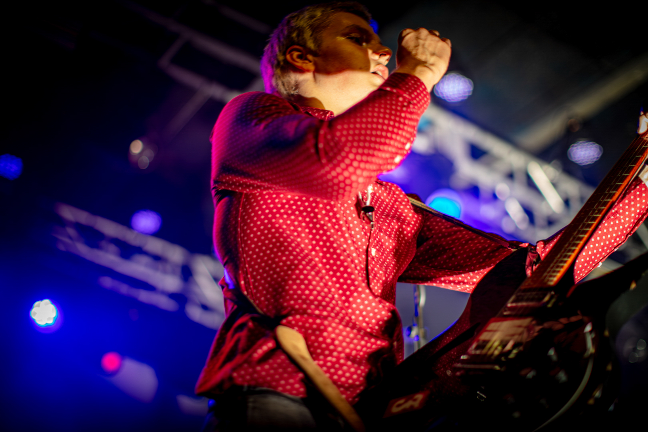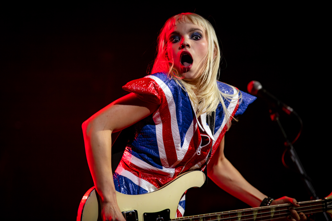 They open with Urbia, followed by Newsflash, and within seconds, the pit turns into a mass of movement. Their sound is urgent and carries tension; chaos meeting control. One can sense their street-performer roots in the way they handle a crowd: no hesitation, and no fear in feeding off their audience’s energy. There’s an element of theatricality which feels deliberate but not artificial: Issey will occasionally lock eyes with the crowd as if looking into a mirror, flicking her hair mid-riff, pouting. The audience picks up on it, reciprocates, jumping up and down, and raising fists during set highlights like Johnny Don’t be Scared. The physical connection between band and audience is both rough and communal; alive.