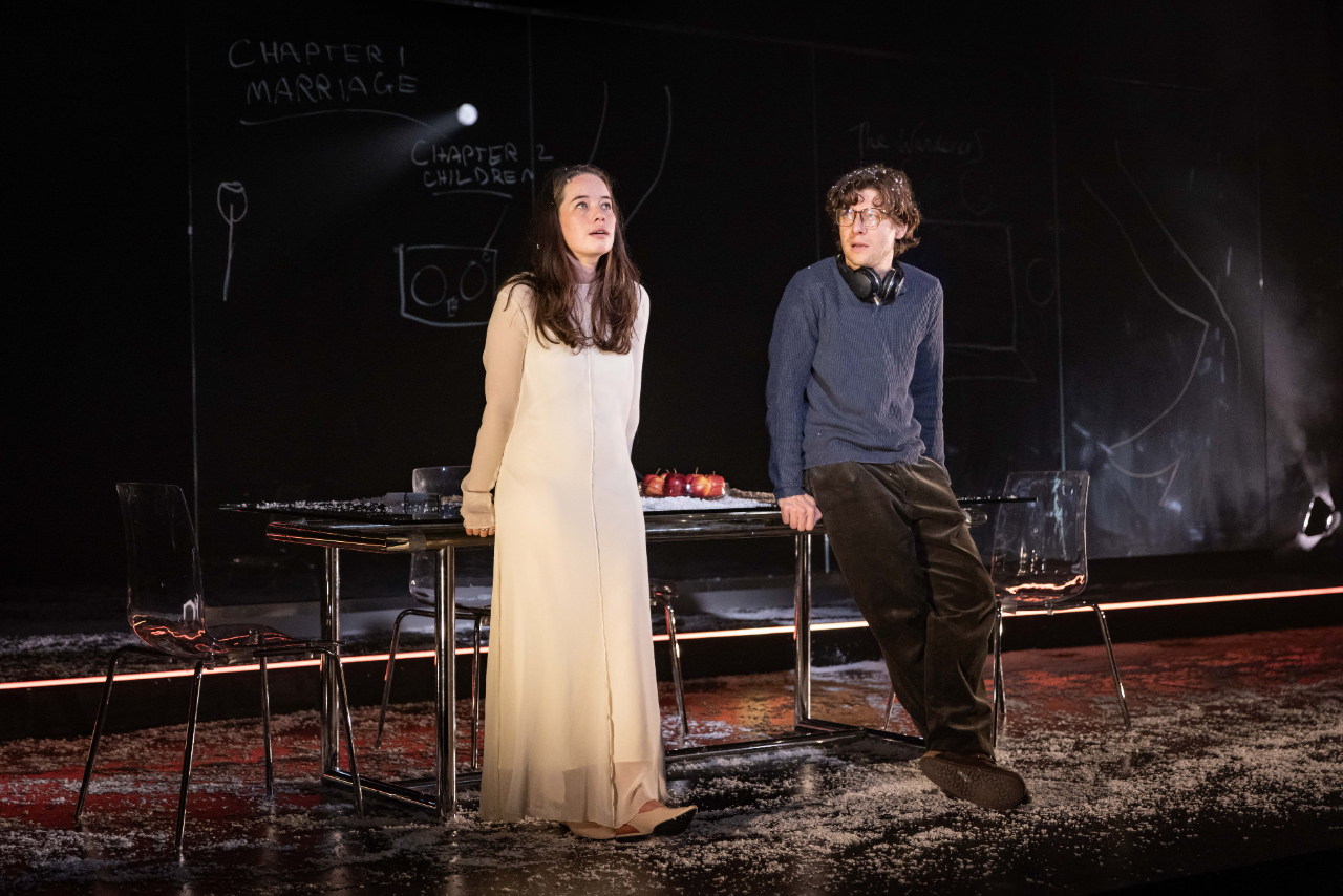 Golyak’s inventive use of chapters and a transparent wall drives the narrative home, guiding us through the stages of marriage – all literally written in white pen.
