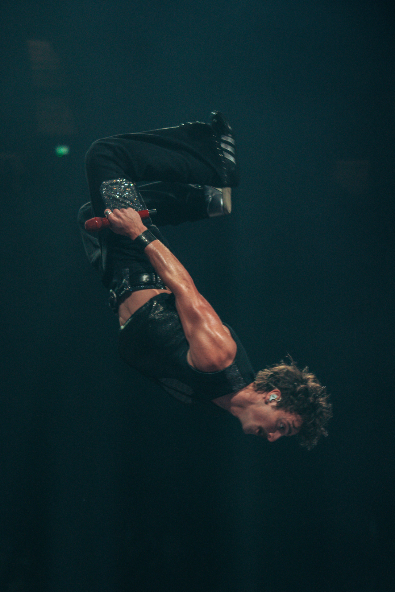 The stage extends to reach right out into the crowd, and as soon as he starts, that walkway is used to greet fans all over the venue. The vocals are immediately strong, and the atmosphere is electric as the first few songs play out. During a more stripped-down version of Drunk in My Mind, the artist dives from the stage, singing right to the audience. He moves effortlessly through the Arena, enthusiasm never faltering.