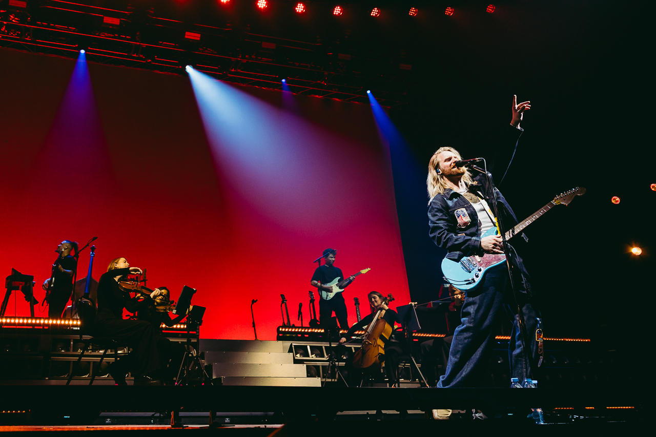 Sam Ryder graced the stage at the OVO Arena Wembley on Thursday for the final stop on his Road to Wembley tour. After much anticipation, red lights and smoke became our view as Ryder came to the stage, supported by an impeccable string quartet who began the instrumental for The Sun’s Gonna Rise.