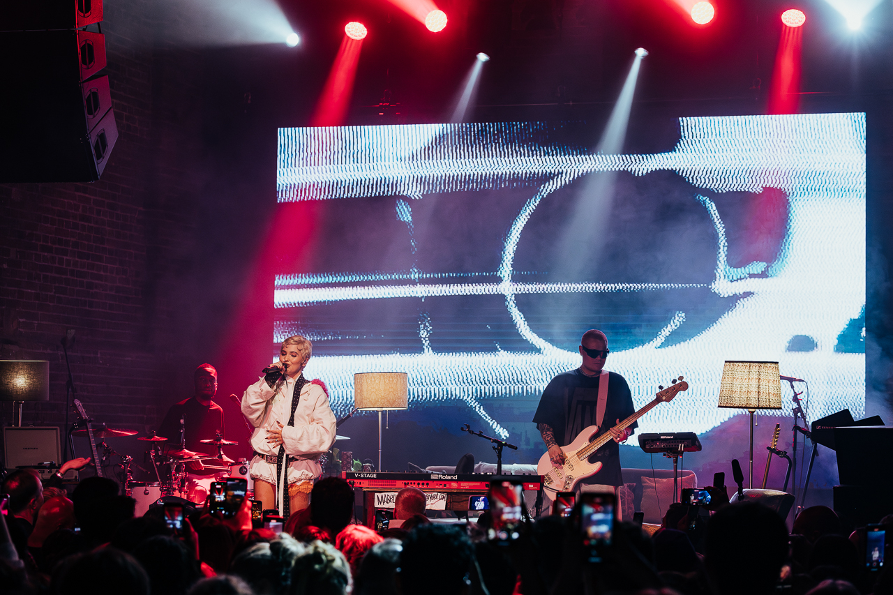 Playing Village Underground for the first time in 11 years, the concert was something of a homecoming for Mabel. This was equally reflected by her tour visuals, depicting London streets. Opening with Finders Keepers, by All Over You, not a single person was stationary. Stay still, and be bored. Mabel made the most out of the space – the stage was set up to look like a cosy living room, mimicking a house party. Fans were close to the stage and passed gifts as Mabel sang straight into phone cameras.